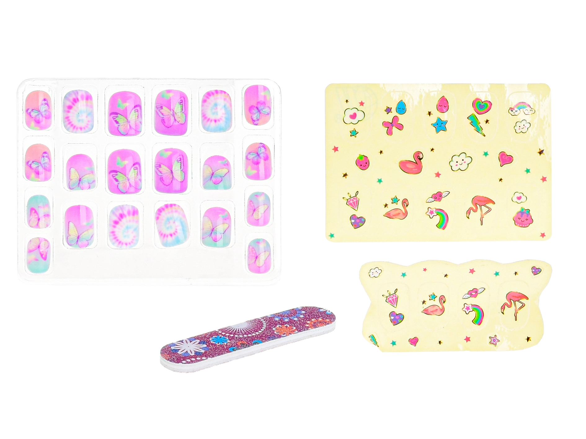 - Kompletní balení – 20 ks nehtů, nálepky a pilník