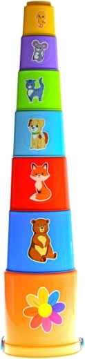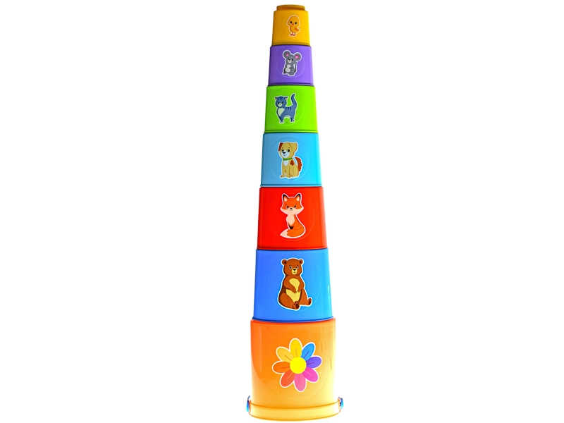Sada obsahuje několik lehkých a barevných kelímků, které lze snadno skládat, hnízdit do sebe nebo používat při volné hře. Díky výrazným barvám a jednoduchému tvaru děti přirozeně rozvíjejí zrakové vnímání, trpělivost a prostorovou představivost.