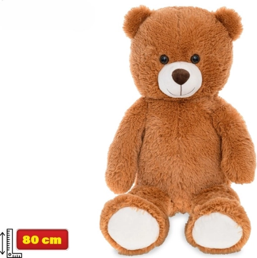 Roztomilý plyšový medvěd o výšce 80 cm je měkký, hebký a připravený k mazlení. Jemný plyšový materiál, elegantní mašle a bezpečnost od narození (0m+) z něj dělají dokonalého společníka pro děti i dospělé a zároveň stylový doplněk dětského pokoje.