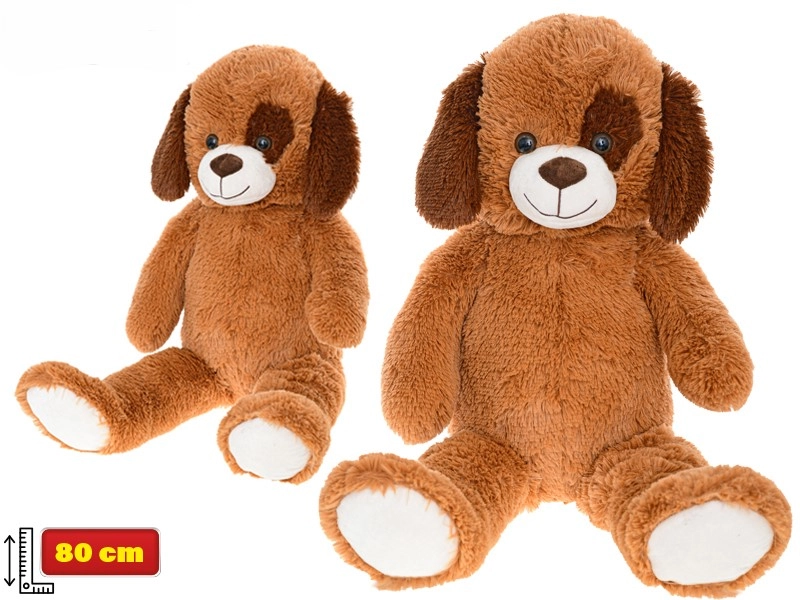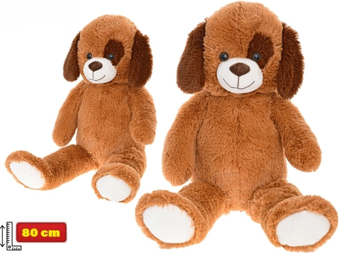 Velký plyšový pes Plush Friends v tmavě hnědé barvě je měkký, přítulný a ideální pro objímání. Díky výšce 80 cm poskytuje skvělý komfort při relaxaci a je vhodný pro děti od narození. Kvalitní, na dotek příjemný materiál zajišťuje dlouhou životnost a realistický vzhled, který potěší malé i velké milovníky psů.
