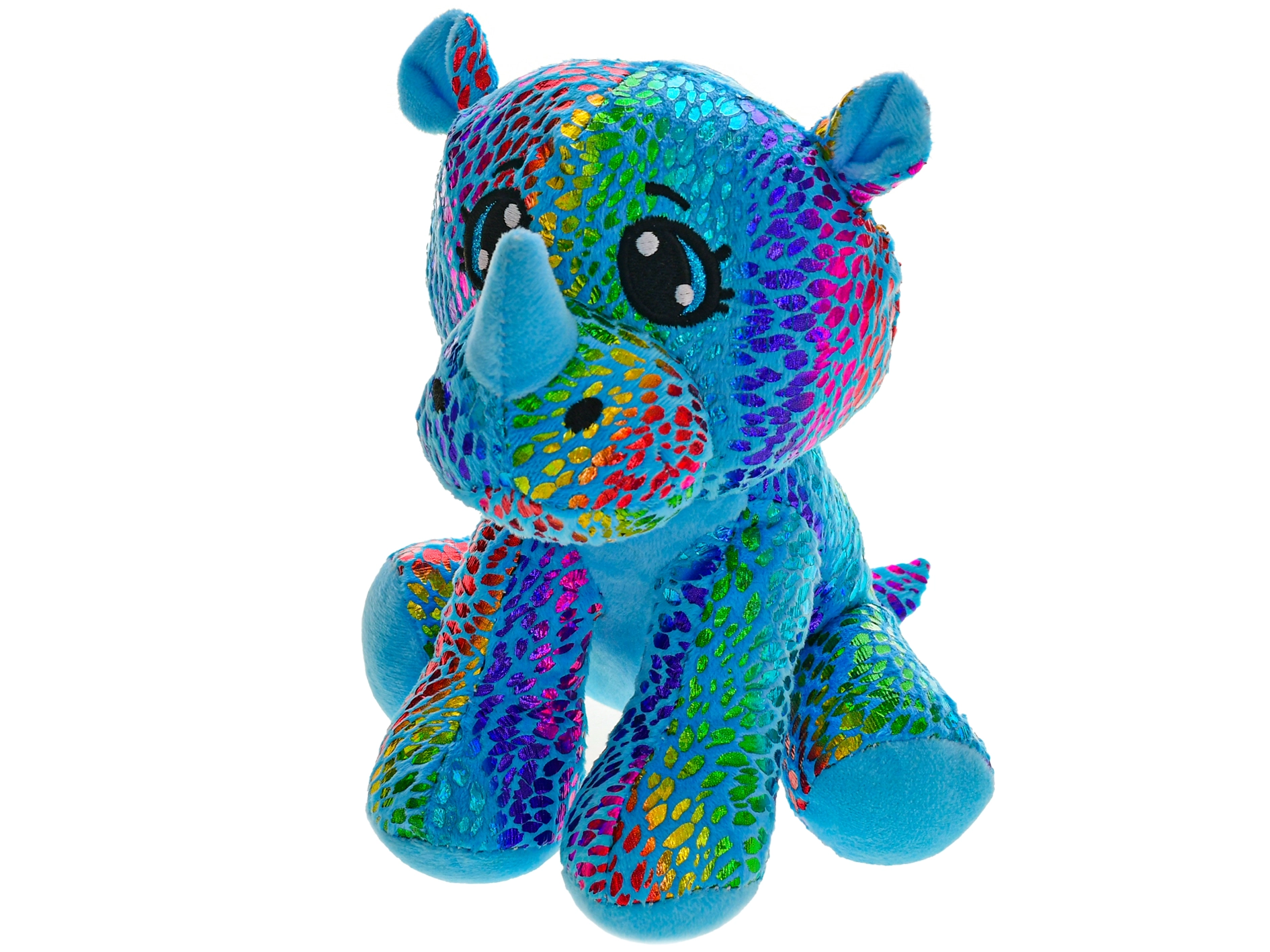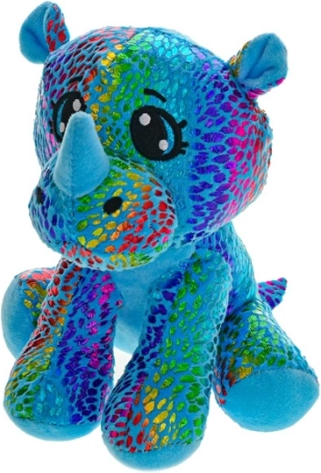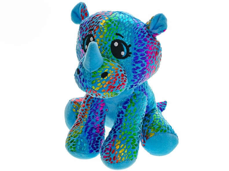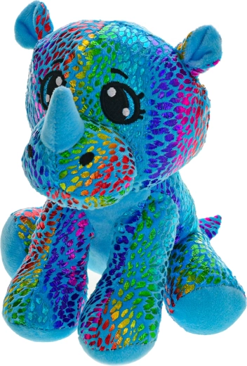 Roztomilý plyšový nosorožec v sedící poloze okouzlí svou jasně modrou barvou a třpytivými detaily. Vyroben z měkoučkého, hebkého materiálu, ideálního pro mazlení a hraní. Díky bezpečnému provedení 0+ je vhodný již od narození a stane se oblíbeným společníkem do postýlky i na cesty.