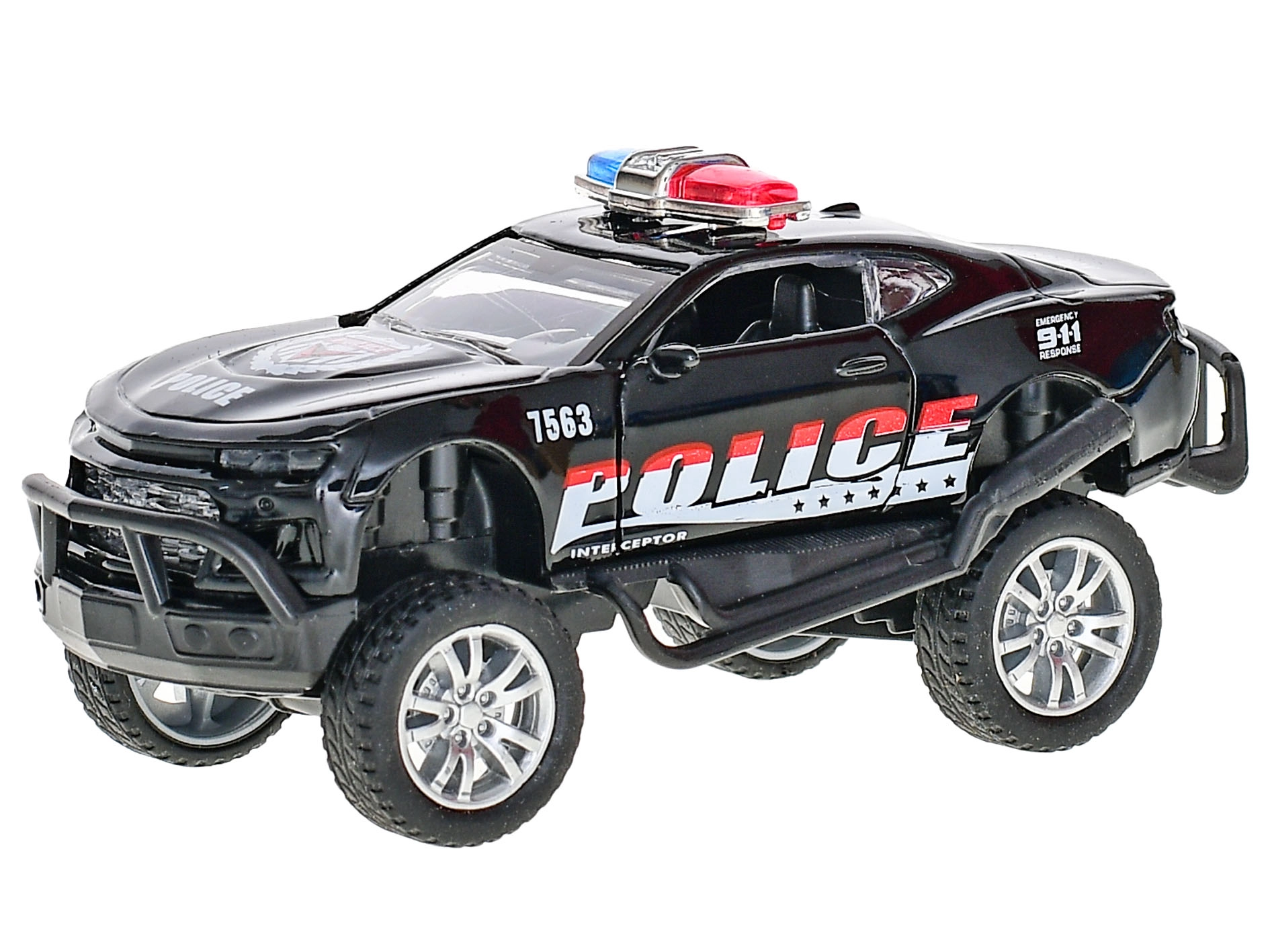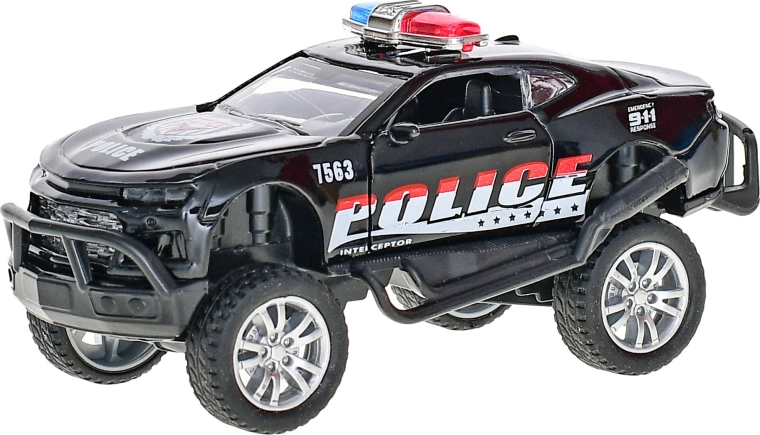 Kompaktní kovové policejní auto o délce 13 cm potěší všechny malé fanoušky zásahových vozidel. Díky zpětnému natahování vyrazí po puštění vpřed a přinese ještě více zábavy při hře. Odolná kombinace kovu a plastu zaručuje dlouhou životnost, dvě barevné varianty (bílá, černá) umožní výběr podle vkusu. Vhodné od 3 let, baleno v krabičce – skvělé i jako dárek.