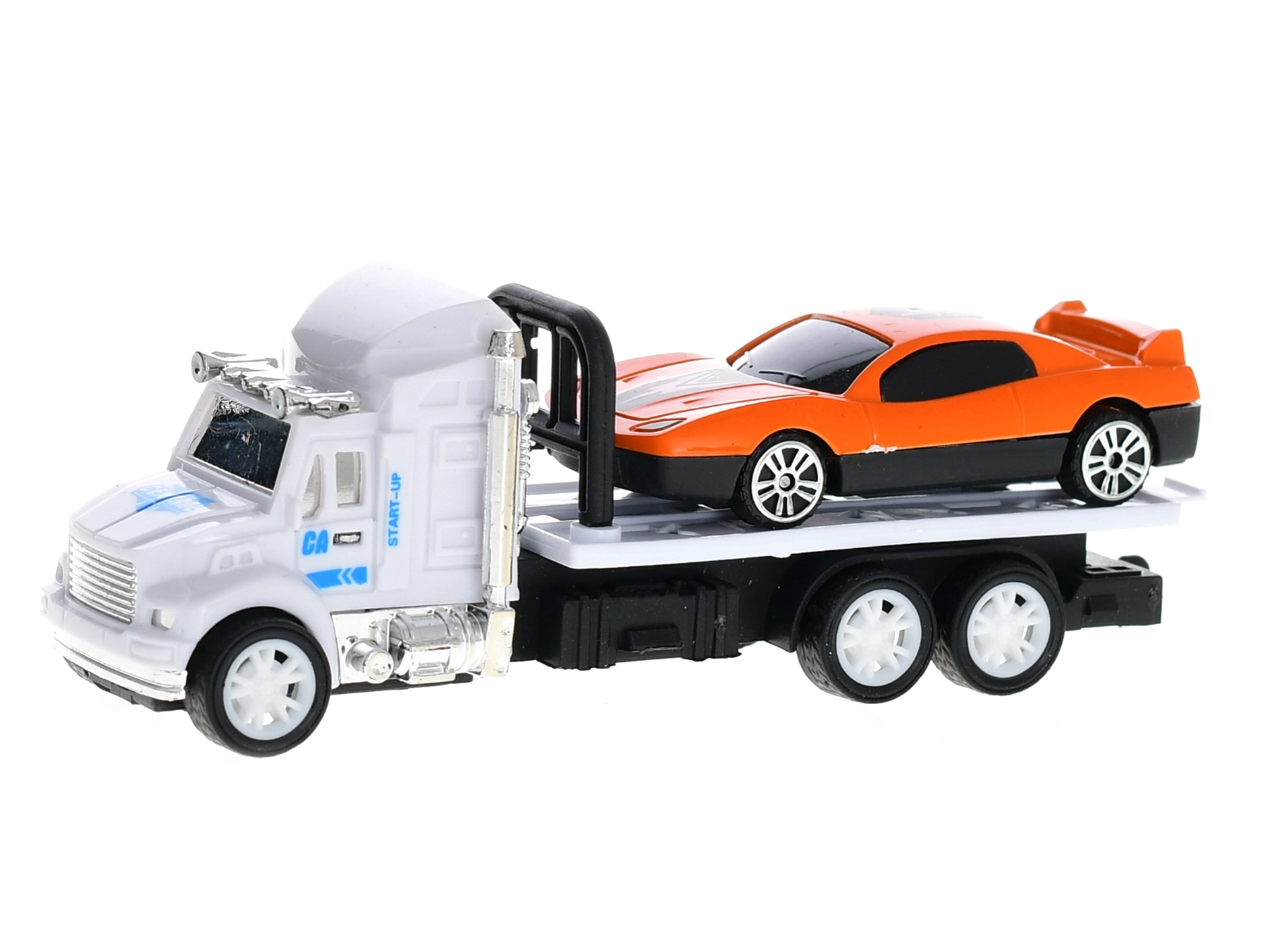 Toto kompaktní nákladní auto s setrvačníkovým pohonem se po natažení dozadu rozjede vpřed a nabídne dětem interaktivní hru bez nutnosti baterií. Součástí je i menší vozidlo (4–7,5 cm), které lze umístit na plošinu – ideální pro tvorbu vlastních dopravních příběhů.