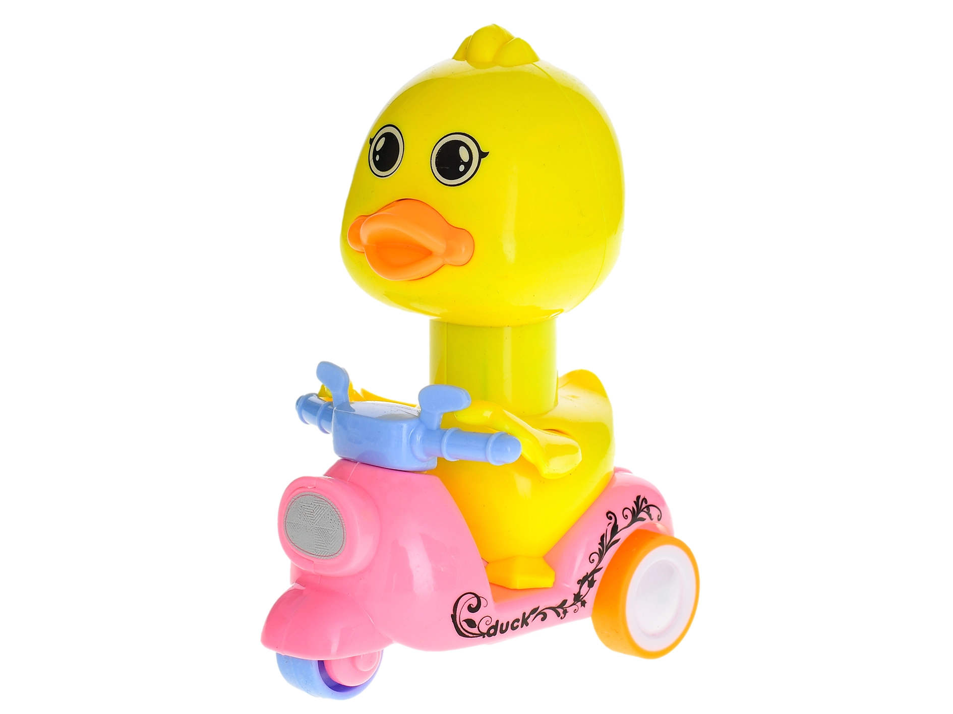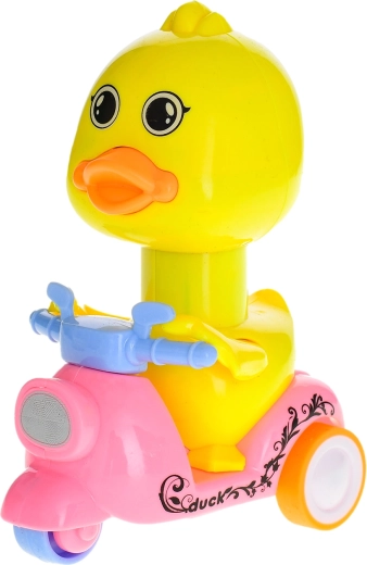 Roztomilá kačenka o velikosti 13 cm potěší děti od 3 let svou interaktivní funkcí. Po stlačení se kačenka rozjede a její hlava se otáčí o 360°, což podporuje rozvoj jemné motoriky a přináší spoustu zábavy. Vyrobena z kvalitního plastu, dostupná ve dvou barvách – růžové a fialové, ideální do malých dětských rukou.
