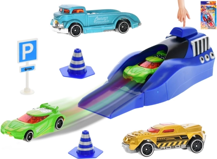Pružinový vystřelovač pošle autíčko vpřed během sekundy – ideální pro závody na rovných plochách i improvizovaných tratích.