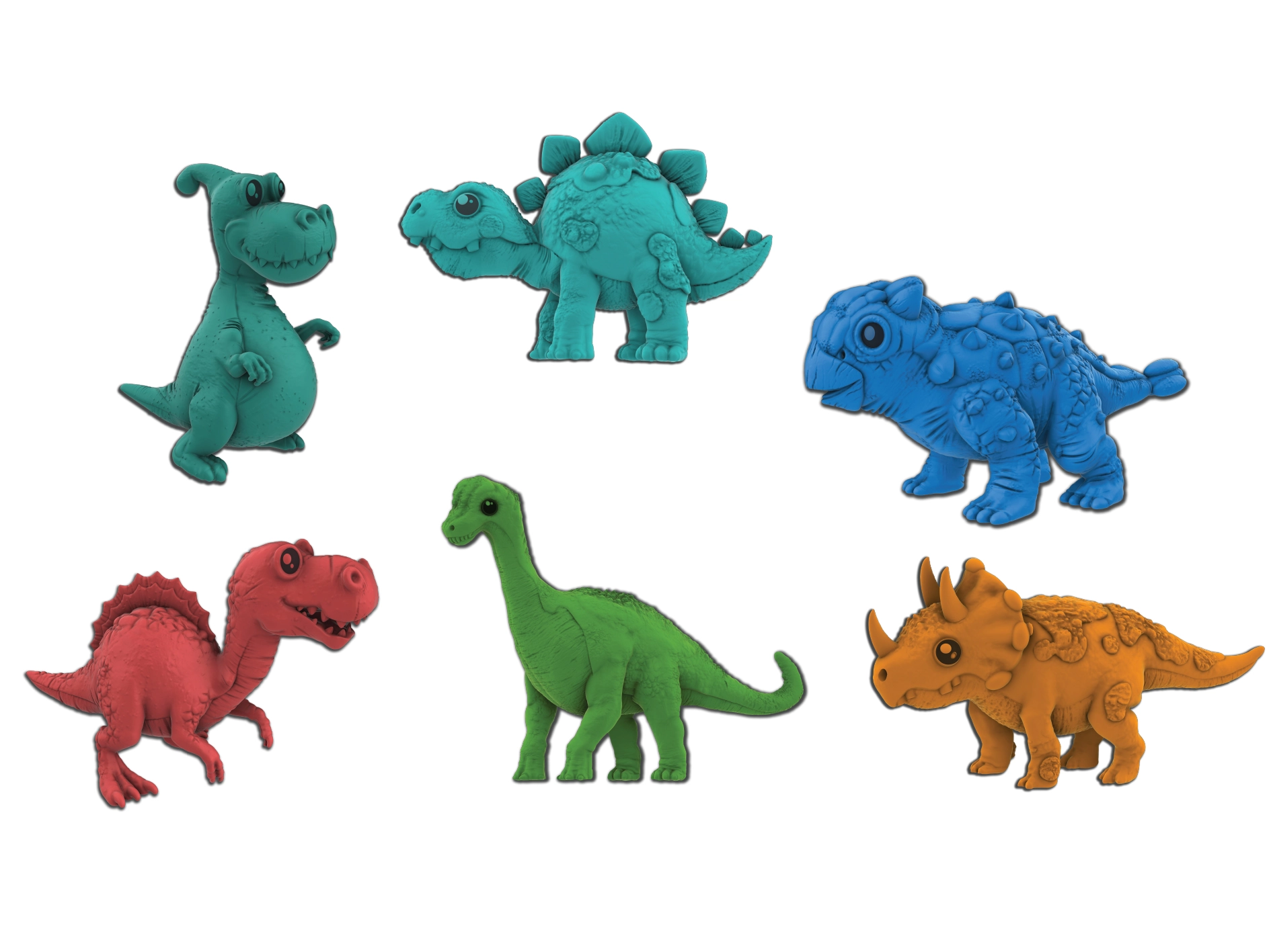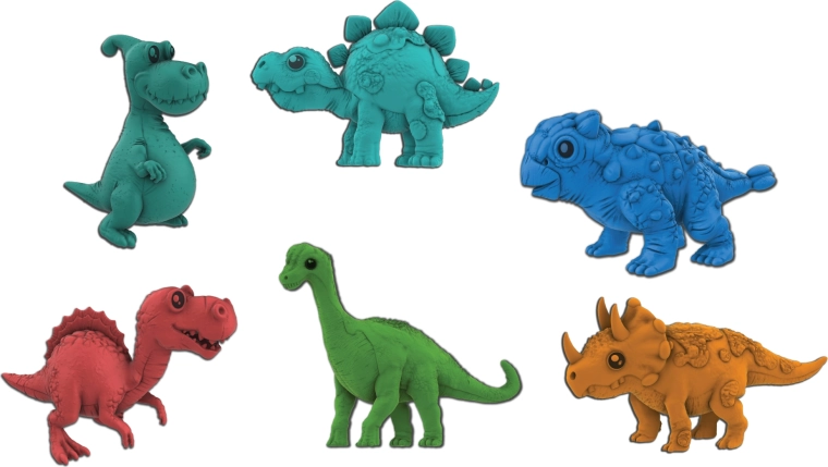 Vejce jsou dostupná ve dvou barvách – červené a oranžové – a náhodně ukrývají jednu z osmi druhů dinosaurů: T‑Rex, Brontosaurus, Stegosaurus, Triceratops, Parasaurolophus, Ankylosaurus, Spinosaurus nebo Plesiosaurus. Konkrétní barvu a druh nelze předem zvolit, což zaručuje element překvapení při každém nákupu.
