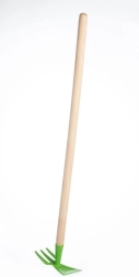 Oboustranná hlavice umožňuje okopávání, kypření a pletí záhonů, zatímco kompaktní rozměry usnadňují bezpečné používání. Ideální pro učení základům zahradničení a rozvoj motoriky.
