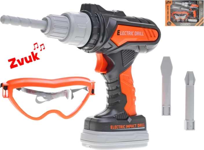 Součástí sady jsou dvě vyměnitelné vrtáky a ochranné brýle o velikosti 14,5 cm, které hravou formou učí děti bezpečnému zacházení s nástroji. Hračka je vyrobena z odolného plastu a napájena 2× AA bateriemi (nejsou součástí balení). Balení v praktické krabičce z ní dělá ideální dárek pro malé milovníky oprav a stavění.