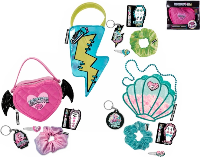 Stylová mini kabelka pro malé fanoušky MONSTER HIGH přináší zábavu i módní šmrnc. Dostupná ve třech designech – mušle, blesk a srdce – každá varianta obsahuje tematické doplňky, jako jsou klíčenky a vlasové ozdoby. Díky kompaktním rozměrům se skvěle hodí na hraní, sbírání i nošení. Vyrobeno z kvalitního plastu, vhodné pro děti od 5 let.