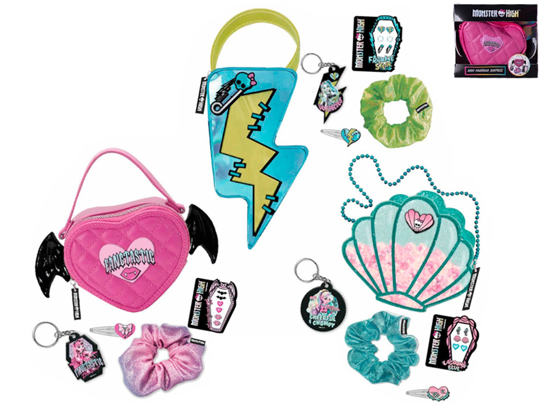 Objevte kouzlo série MONSTER HIGH s roztomilou mini kabelkou, která potěší každou malou parádnici. Tři originální motivy – mušle, blesk a srdce – odkazují na oblíbené postavy a jejich jedinečný styl. Každé provedení je doplněno stylovými drobnostmi, které ladí s osobností dané postavy.