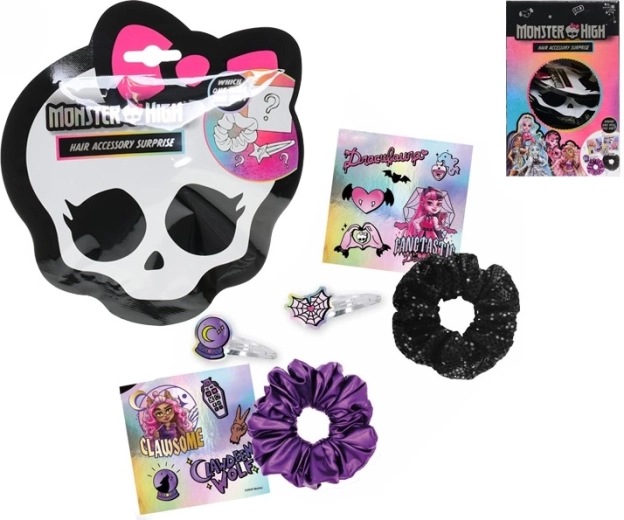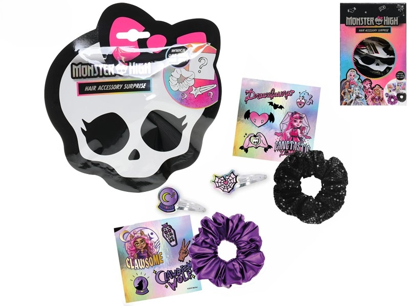 Objevte hravý svět účesů s tematickou sadou vlasových doplňků MONSTER HIGH. Děti mohou snadno kombinovat různé sponky, gumičky a ozdoby, vyjádřit svou osobnost a dodat účesu jedinečný styl inspirovaný oblíbenými postavami. Sada je lehká, snadno přenosná a ideální na doma, do školy i na výlety.