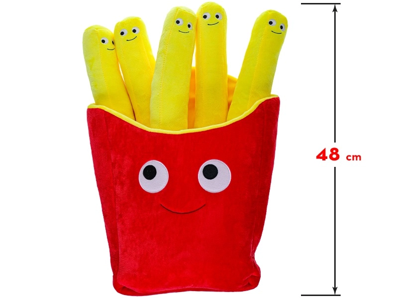Roztomilá plyšová hračka ve tvaru hranolků s usměvavým obličejem přináší dětem od narození spoustu radosti a pohodlí. Díky délce 48 cm a měkoučkému plyši je ideální na mazlení i hraní. Lehká konstrukce zajišťuje snadné přenášení doma, v kočárku i na cestách, zatímco veselý design podporuje dětskou představivost a kreativitu.