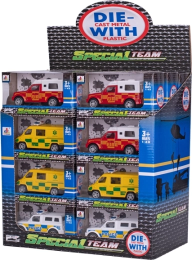 Tato realistická sada kovových modelů záchranných složek přináší dětem autentické herní situace: od policejní hlídky přes hasičský zásah až po záchranu se sanitkou. Díky pevnému kovovému tělu s plastovými detaily, volnoběžným kolům a mechanismu zpětného chodu zvládnou vozidla svižnou jízdu po natažení dozadu.