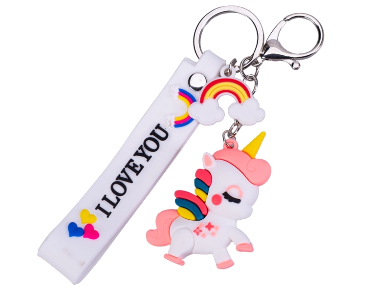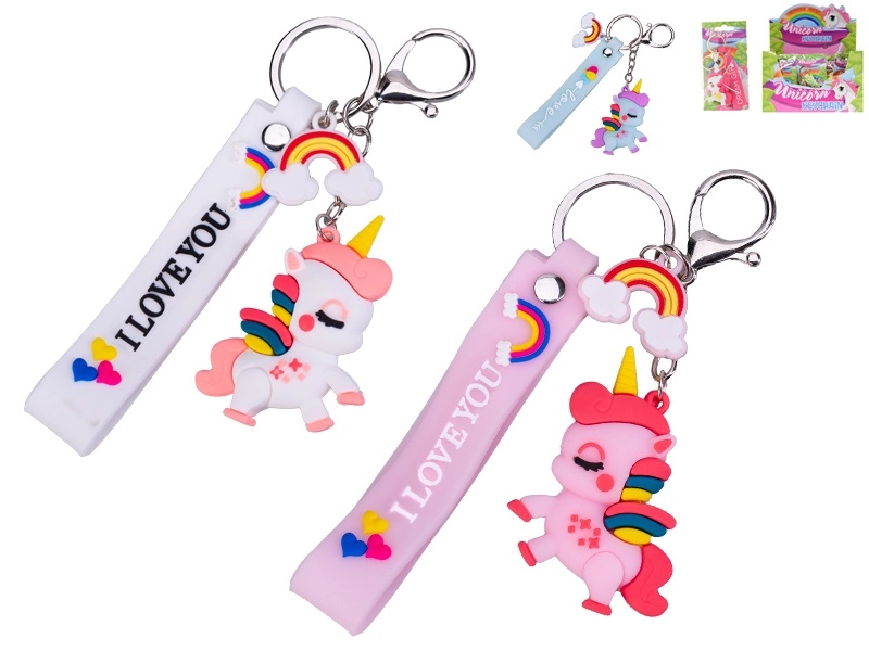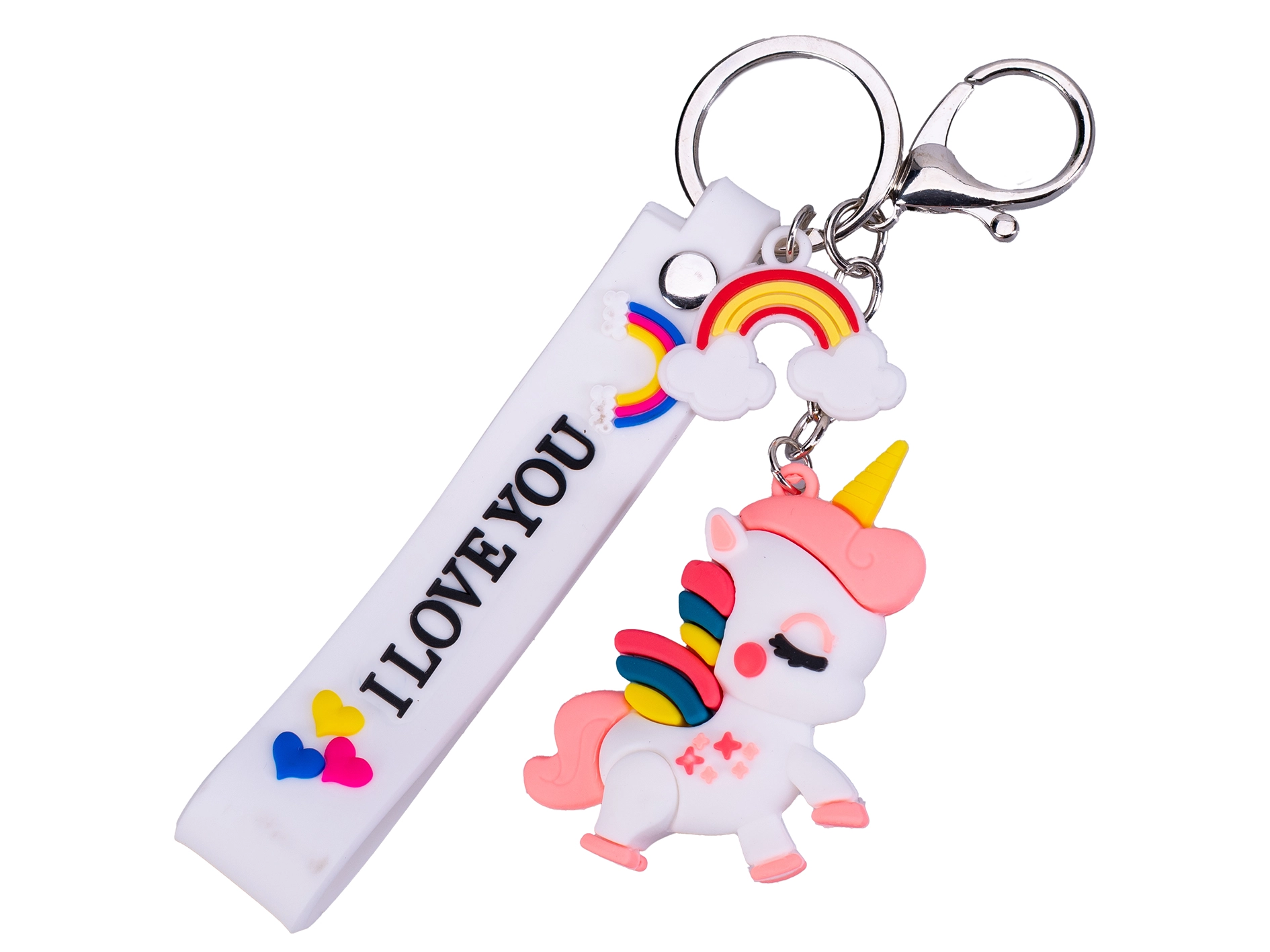 Roztomilý přívěsek na klíče s motivem jednorožce potěší děti i dospělé. Nabízí pestré barvy, měkký silikonový popruh s nápisem I LOVE YOU a odolné kovové kroužky pro snadné připnutí ke klíčům či tašce. Lehký, přitom odolný doplněk v růžové, modré a bílé variantě.