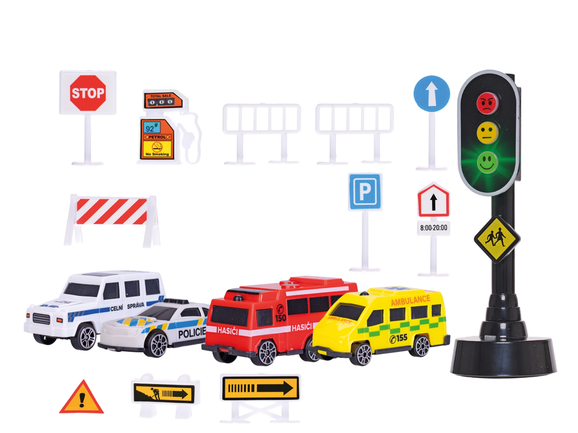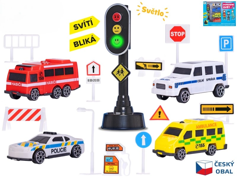 - 4 autíčka, dopravní značky, funkční semafor