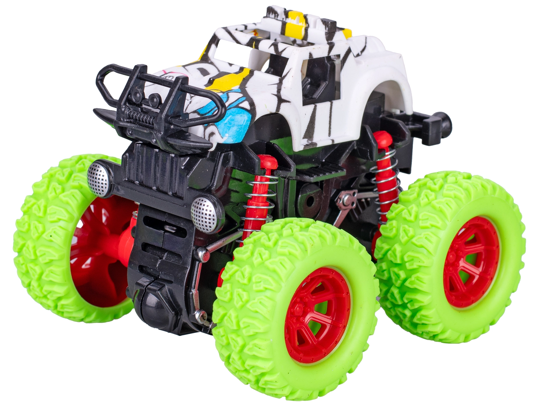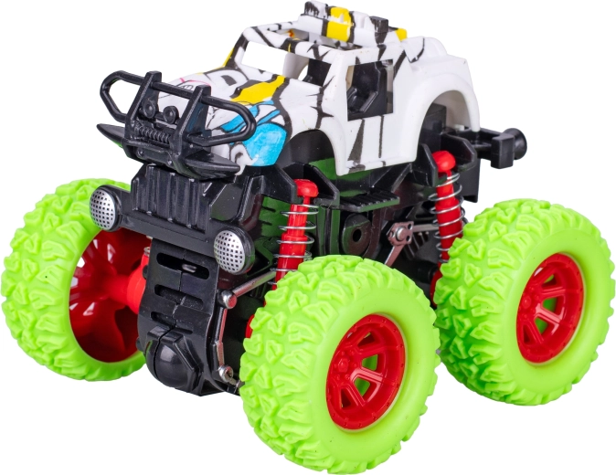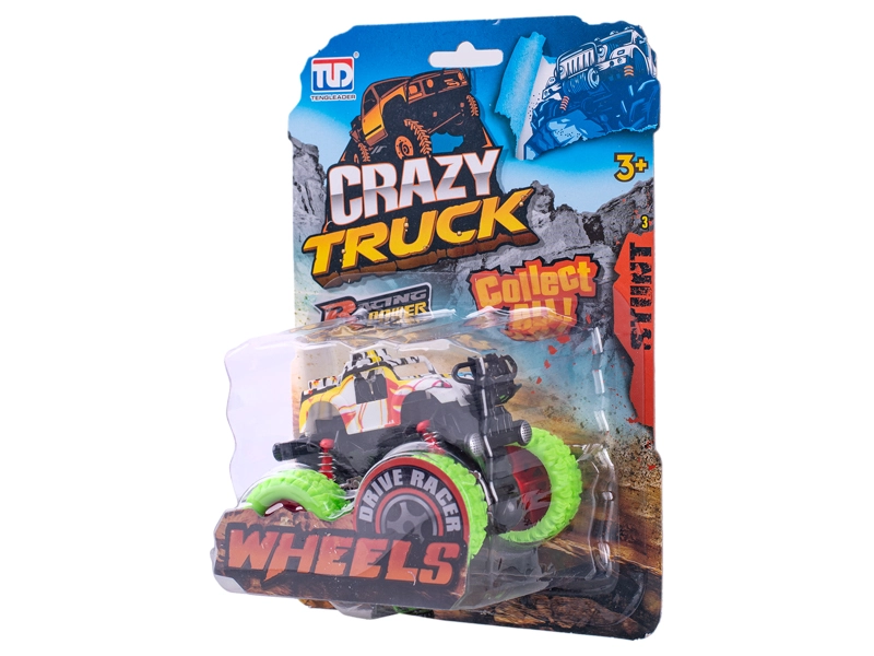 Užijte si akční jízdu s monster truckem Crazy Truck – kompaktním autíčkem na setrvačník o délce 9 cm s výrazným graffiti designem a velkými koly. Díky setrvačníkovému pohonu stačí autíčko několikrát natáhnout dozadu a pustit – vyrazí na dlouhou trať a zvládne i náročnější terén. Odolný plast zajišťuje dlouhou životnost a skvělou zábavu pro děti od 3 let.