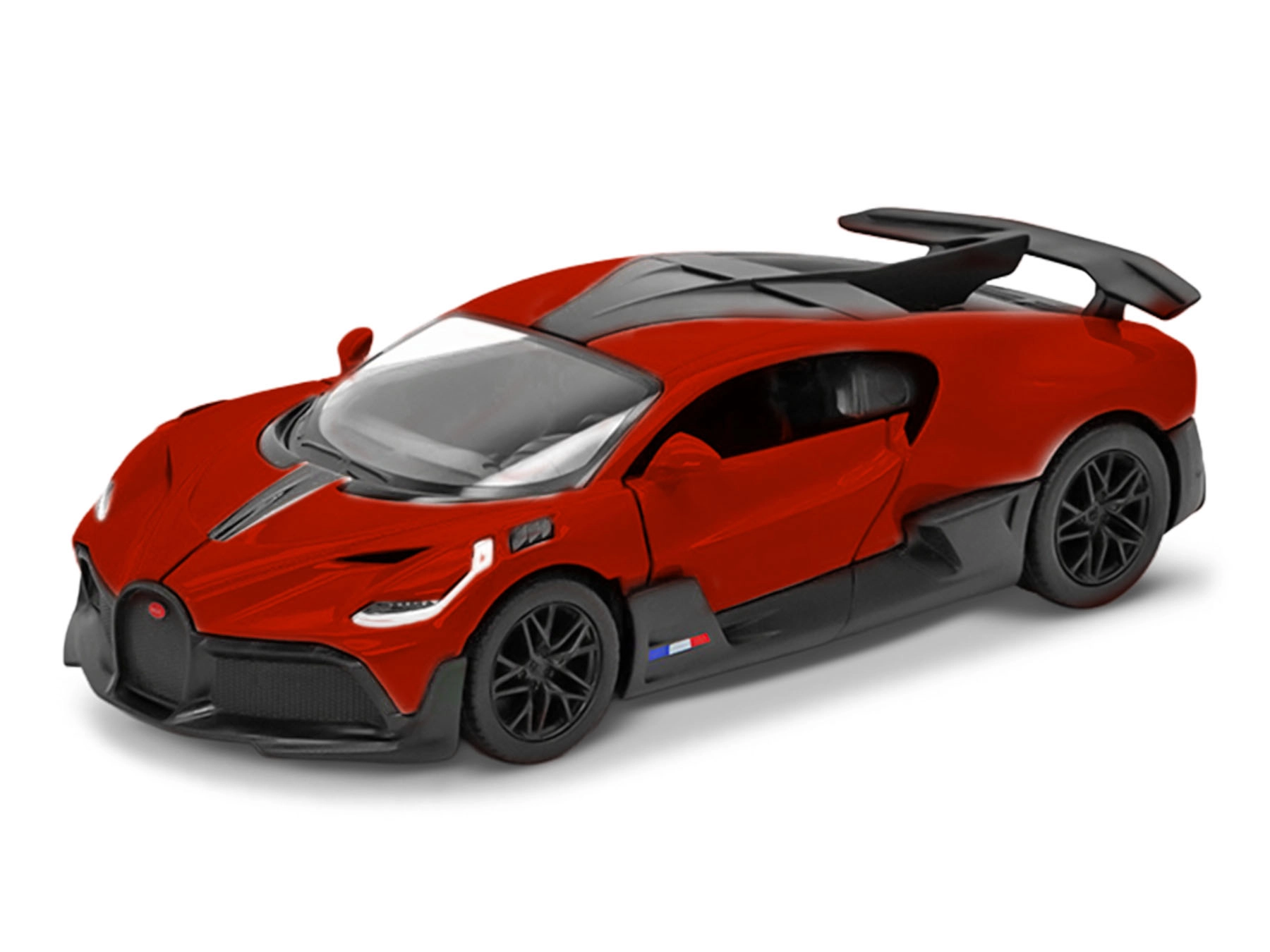 Kinsmart BUGATTI Divo je detailní kovový model slavného hypersportu, který vyniká realistickým zpracováním a zábavnou funkcí zpětného chodu. Stačí natáhnout, pustit a model se sám rozjede vpřed. Díky pevnému kovovému tělu s plastovými doplňky vydrží intenzivní hraní a potěší i náročnější sběratele.