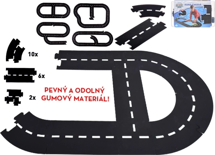 Objevte zábavnou a kreativní autodráhu Kids Globe Traffic, která spojuje tvořivé stavění s vzrušující jízdou. Díky 18 dílkům puzzle si děti snadno sestaví vlastní silniční okruhy o celkové délce 307,5 cm. Flexibilní gumový materiál umožňuje vytvářet různé zatáčky a kombinace, rozvíjí motoriku, koordinaci a fantazii. Ideální pro hraní doma i venku; autíčka nejsou součástí balení.