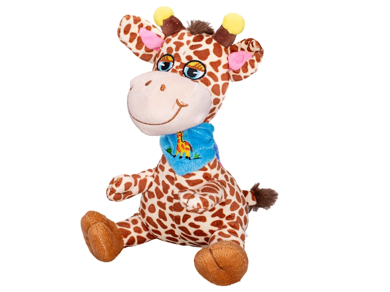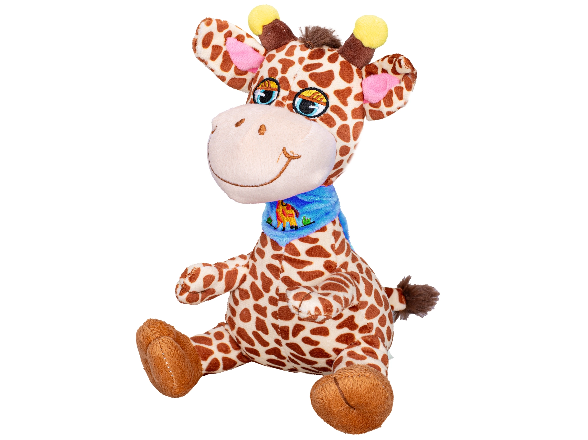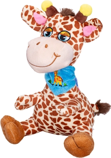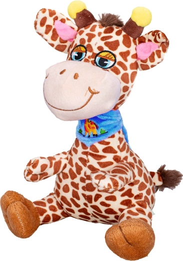 Roztomilá plyšová žirafa o výšce 20 cm je ideální první hračka pro nejmenší. Je vyrobena z měkkého a hebkého plyše, má veselý úsměv a stabilní sedící design. Dostupná je ve dvou variantách se šátkem – modrým nebo růžovým – pro snadný výběr podle vkusu. Vhodná od narození a skvělá na mazlení i na cesty.