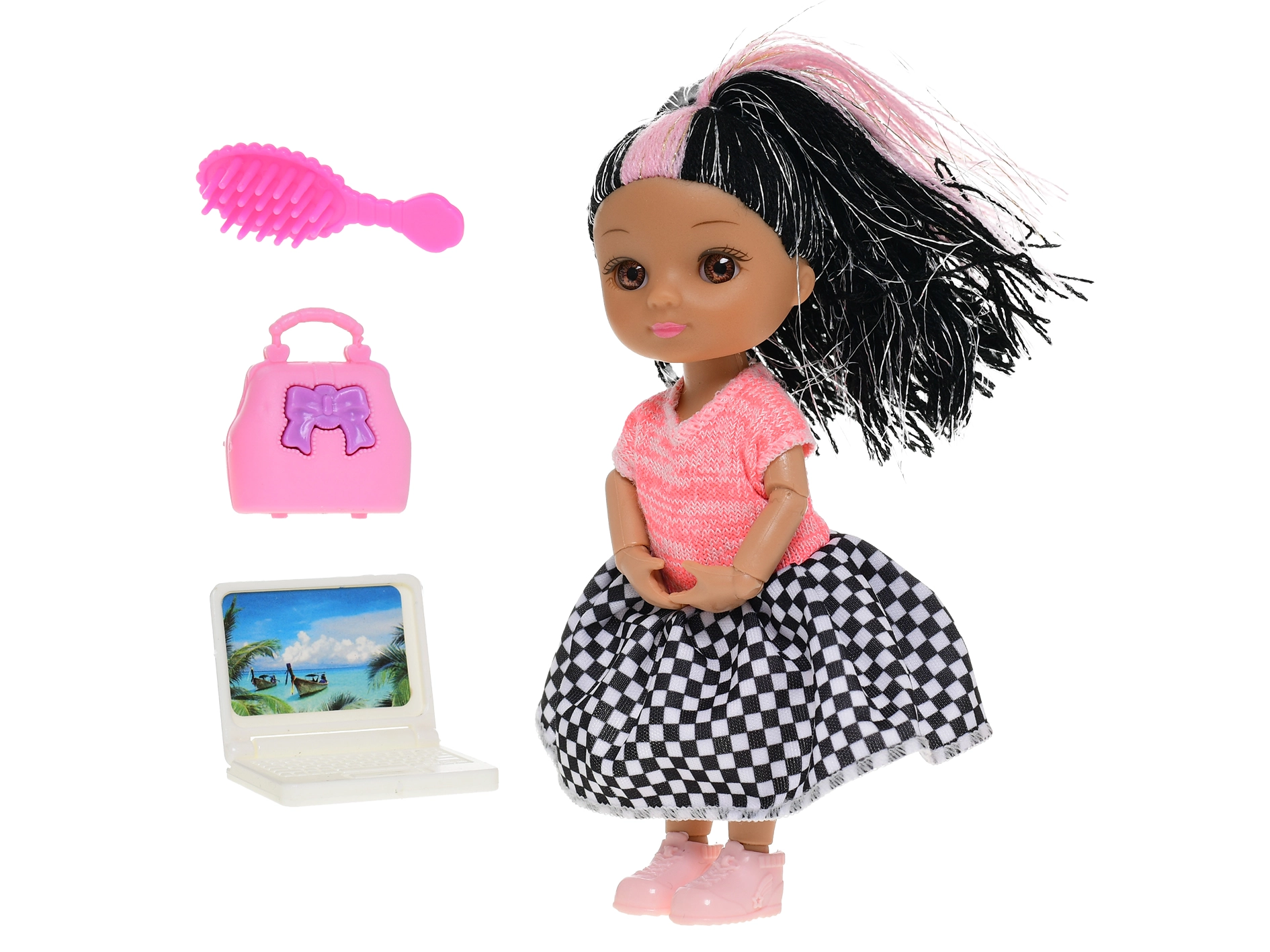 Roztomilá panenka o velikosti 15,5 cm je ideálním společníkem pro malé princezny na cesty i domů. Díky své kompaktní velikosti ji děti snadno vezmou všude s sebou. Je k dispozici ve dvou barevných variantách – zelené a růžové – a součástí balení jsou doplňky pro ještě více zábavy. Hra s panenkou podporuje kreativitu, představivost a rozvíjí jemnou motoriku. Vhodné pro děti od 3 let.