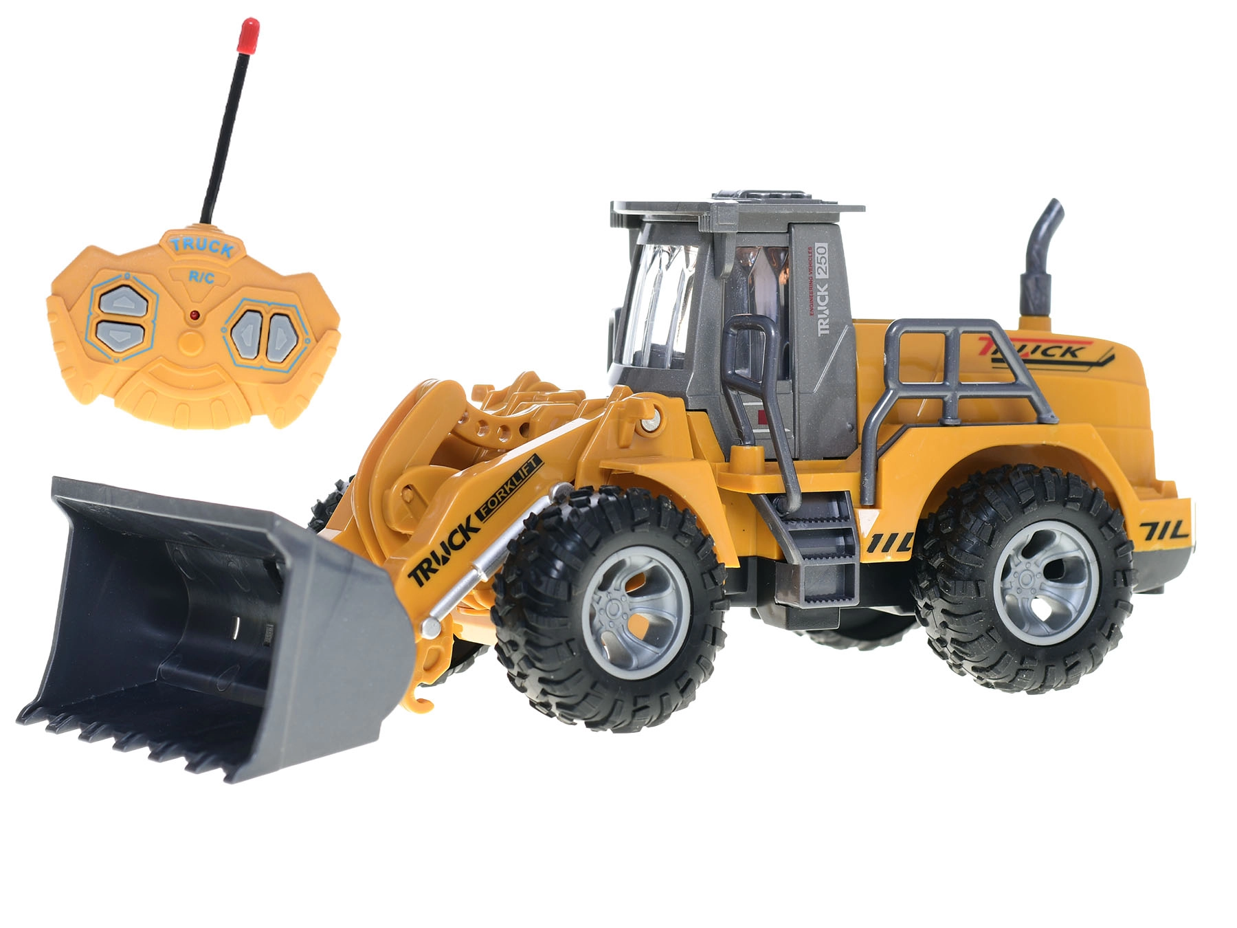 Dálkový ovladač s frekvencí 27 MHz umožňuje jízdu vpřed, vzad, zatáčení do stran a přesné ovládání nakládací lžíce. Pro provoz jsou potřeba 5× AA baterie (nejsou součástí balení). Vhodné pro děti od 3 let – ideální hračka pro malé stavitele, která rozvíjí motoriku, představivost a koordinaci.