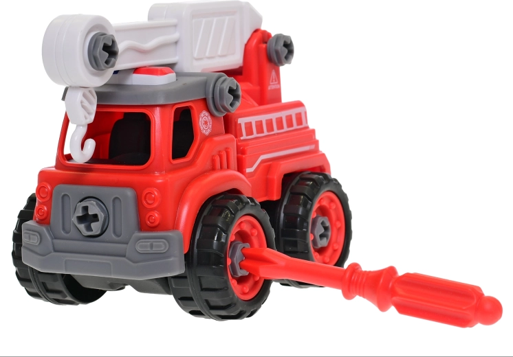 Šroubovací hasičské auto 13 cm potěší všechny malé fanoušky záchranných složek. Děti mohou vozidlo snadno rozebrat a zase složit pomocí šroubováku, čímž si trénují trpělivost, koordinaci oko–ruka a logické myšlení. Kvalitní plast, realistické detaily a sytě červená barva podporují představivost a tématickou hru.