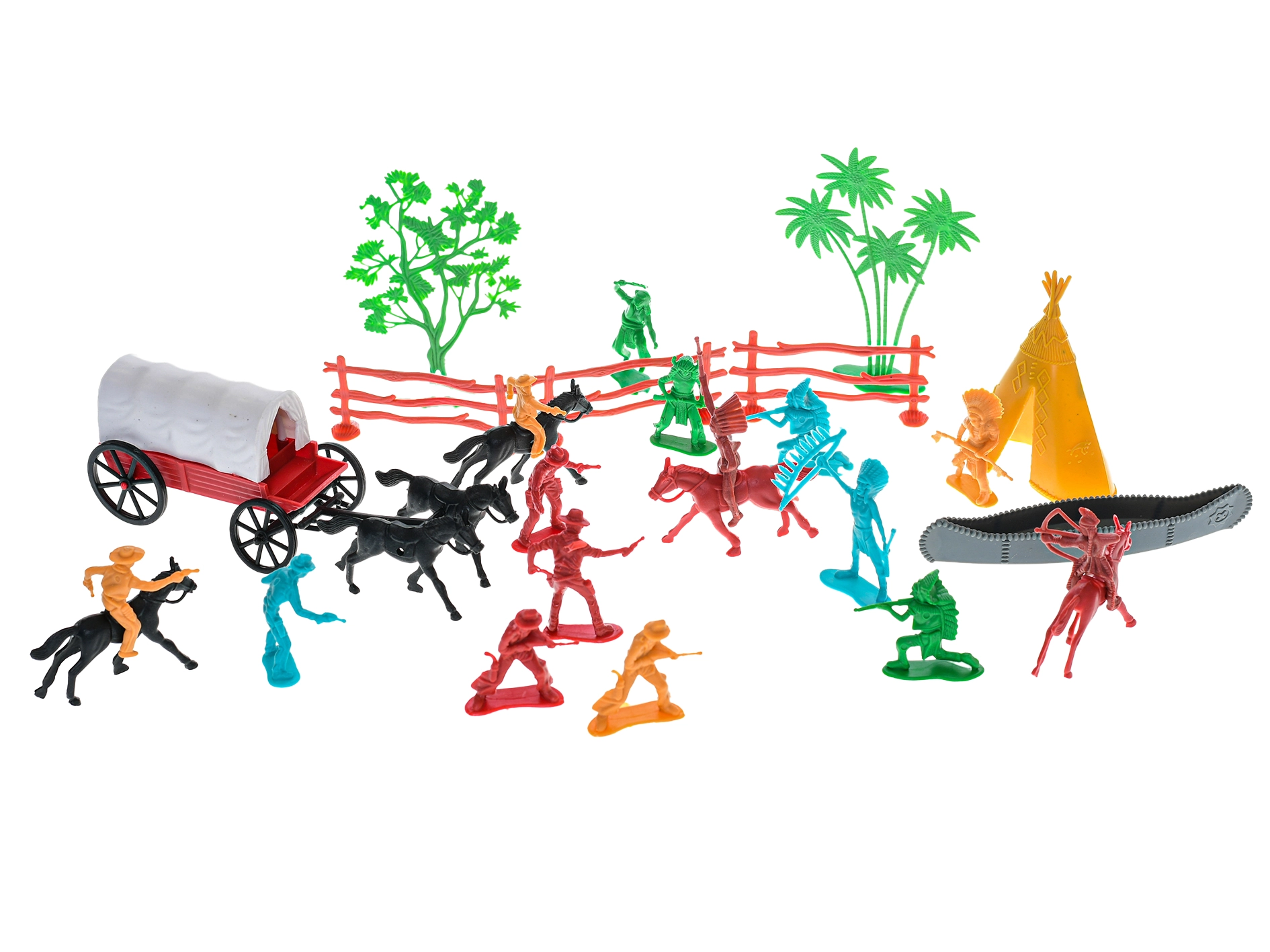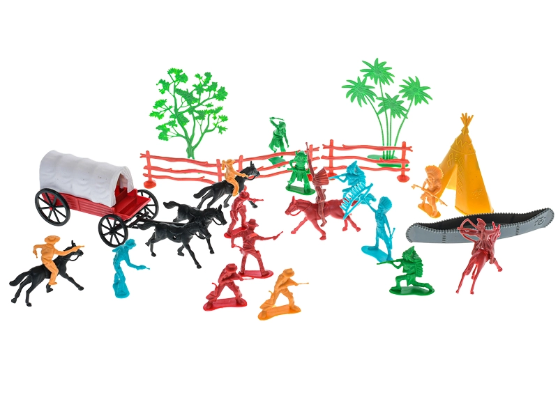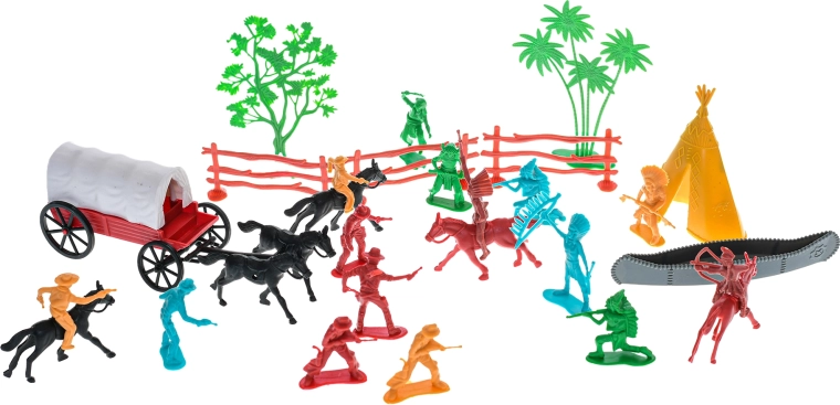 Objevte svět Divokého západu s touto bohatou sadou 31 figurek, která nadchne malé dobrodruhy. Najdete v ní kovboje, indiány, koně i kočár, se kterými děti vytvoří nespočet vlastních příběhů. Figurky jsou vyrobeny z kvalitního plastu, jsou odolné a bezpečné pro děti od 3 let. Podporuje představivost, rozvíjí kreativitu a nabízí hodiny zábavy při hraní rolí.