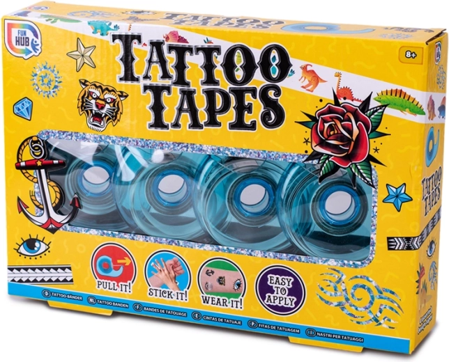 Objevte zábavnou sadu čtyř lepicích pásek, se kterými děti snadno vytvoří dočasné tetování na kůži. Pásky jsou bezpečné pro dětskou pokožku, jednoduše se aplikují i odstraňují a nabízí různé motivy pro vlastní kreativní styl. Ideální pro děti od 8 let na doma, na cesty i jako originální dárek.