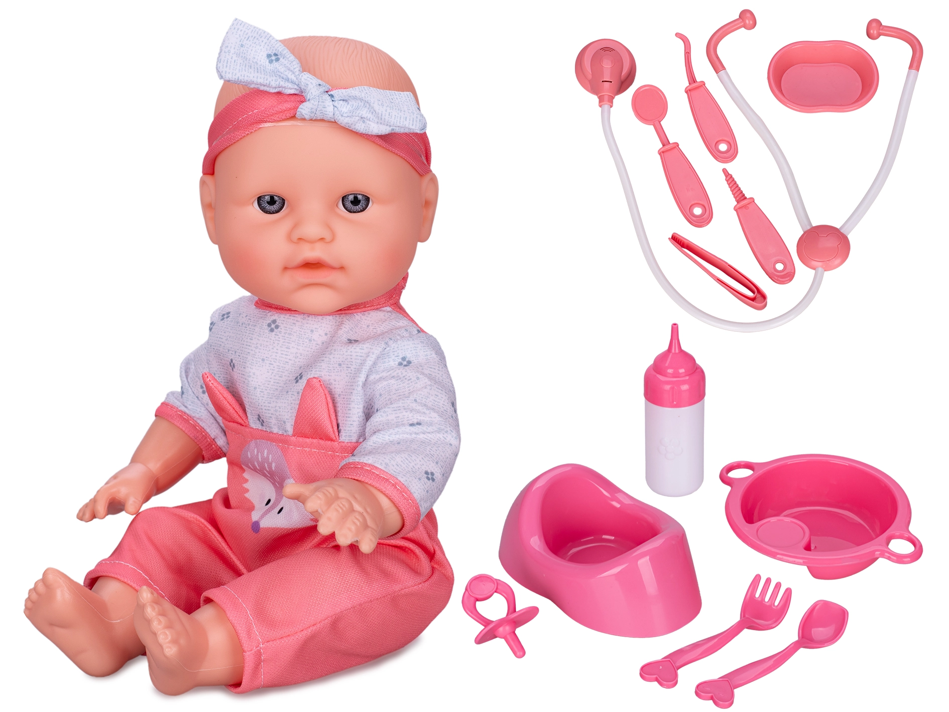 Součástí balení jsou různé doplňky pro péči, které dětem umožní krmit, přebalovat a starat se o panenku jako o opravdové miminko. Odolné plastové provedení a kompaktní rozměr činí panenku skvělou hračkou doma i na cestách.