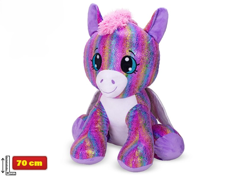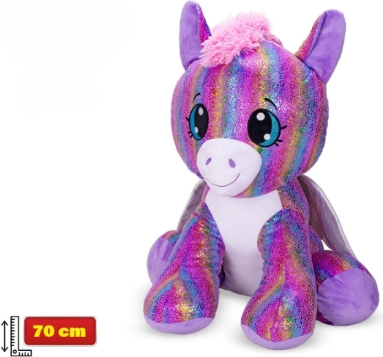 Plyšový pegas Star Sparkle je okouzlující a hebký mazlíček, který si získá srdce dětí i rodičů. Díky jemnému plyši a kvalitnímu zpracování je skvělý pro každodenní objímání, hraní i jako designový prvek do dětského pokoje. Třpytivé detaily a jemné barvy probouzejí fantazii a podporují kreativní hry.