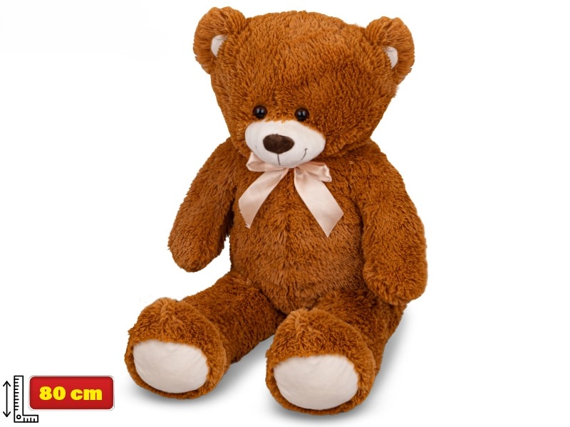 Přivítejte do svého domova hebkého kamaráda, který potěší malé i velké. Tento velký plyšový medvěd o výšce 80 cm je vyroben z jemného a příjemného plyše, který poskytuje maximální pohodlí při mazlení, odpočinku i usínání. Elegantní tmavě hnědá barva s kontrastní mašlí dodává medvídkovi nadčasový a elegantní vzhled.