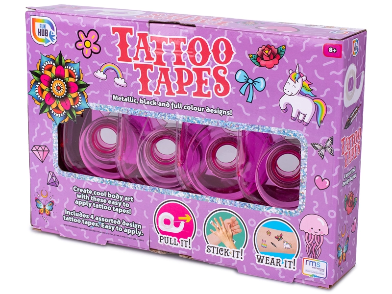 Objevte zábavné a kreativní lepicí pásky s tetovacím motivem pro děti od 8 let. Každé balení nabízí 4 samolepicí pásky s různými vzory, které umožní originálně ozdobit školní potřeby, dárky i deníky. Pásky z krepového papíru jsou mírně průsvitné, snadno se odlepují a nezanechávají stopy po lepidle. Praktická krabička s ostrými zoubky zajistí snadné odtržení a pohodlné použití kdykoli.