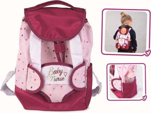Nosítko pro panenku s úložným prostorem lze nosit pohodlně na zádech a díky stahovacím šňůrkám a krytu upevněnému suchým zipem, se na cestách nic neztratí. Z boku má kapsičku pro láhev pro panenky. Popruhy batohu jsou nastavitelné a lze je přizpůsobit velikosti dítěte.