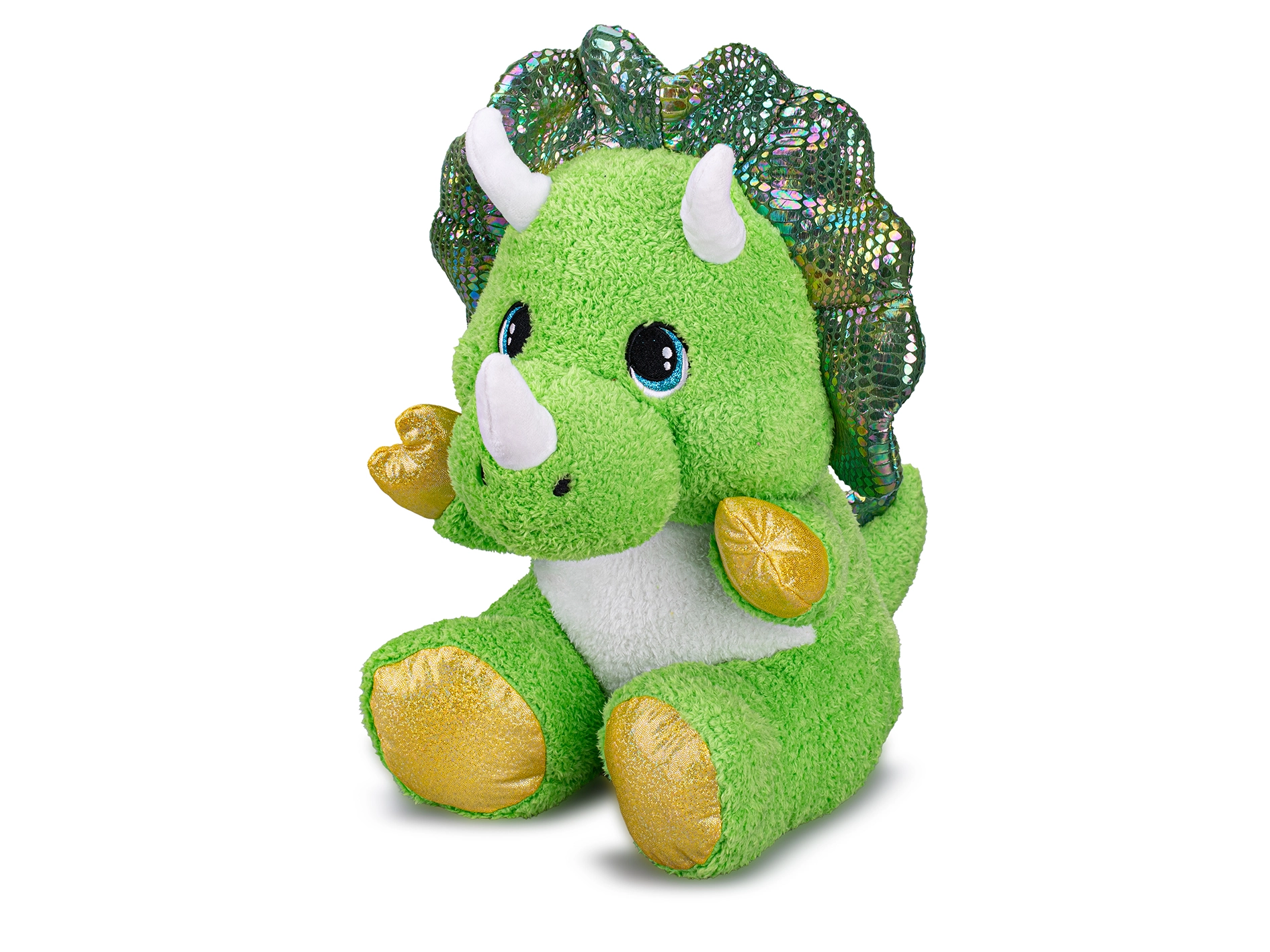 Roztomilý plyšový triceratops o velikosti 37 cm v sedící poloze je měkoučký společník pro nejmenší děti již od narození. Díky jemnému a bezpečnému materiálu je ideální pro mazlení i klidný odpočinek. Zelené zbarvení a detailní provedení podporují dětskou fantazii a dělají z hračky poutavý dárek pro malé milovníky dinosaurů.