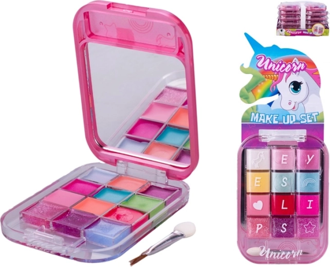 Roztomilá dětská paletka Unicorn potěší malé princezny, které milují líčení a kreativní hru. Obsahuje 6 lesků na rty a 6 očních stínů ve dvou variantách (se zelenou nebo se žlutou), nechybí integrované zrcátko pro snadnou aplikaci. Bezpečné provedení a kompaktní rozměry 8,5 × 6 cm z ní dělají skvělý dárek pro děti od 5 let.