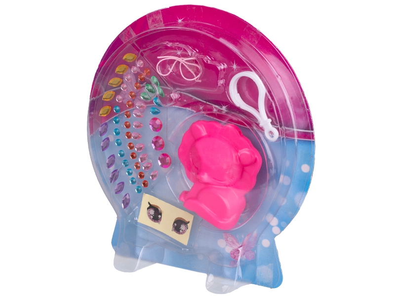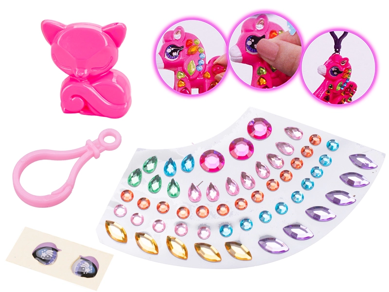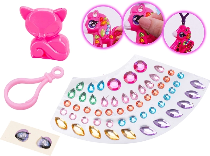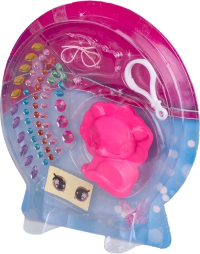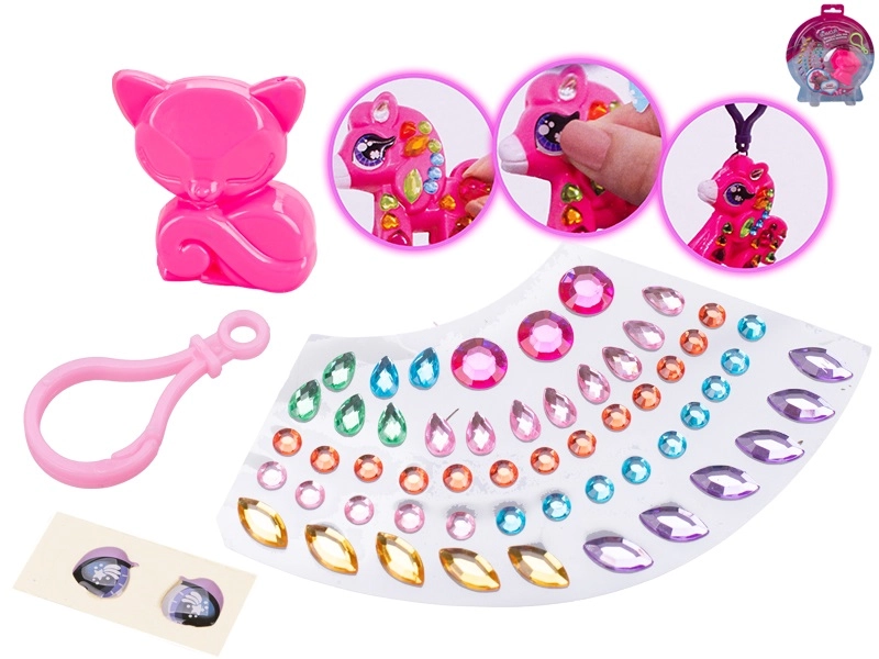 Tato glamour sada je ideální pro malé kreativce, kteří milují tvoření a personalizaci doplňků. V balení najdete vše potřebné – plastové zvířátko (6 cm), praktickou karabinu pro připnutí a barevné samolepicí kamínky včetně očních samolepek. Zdobení je snadné a zábavné, výsledkem je originální klíčenka podle vlastního vkusu.