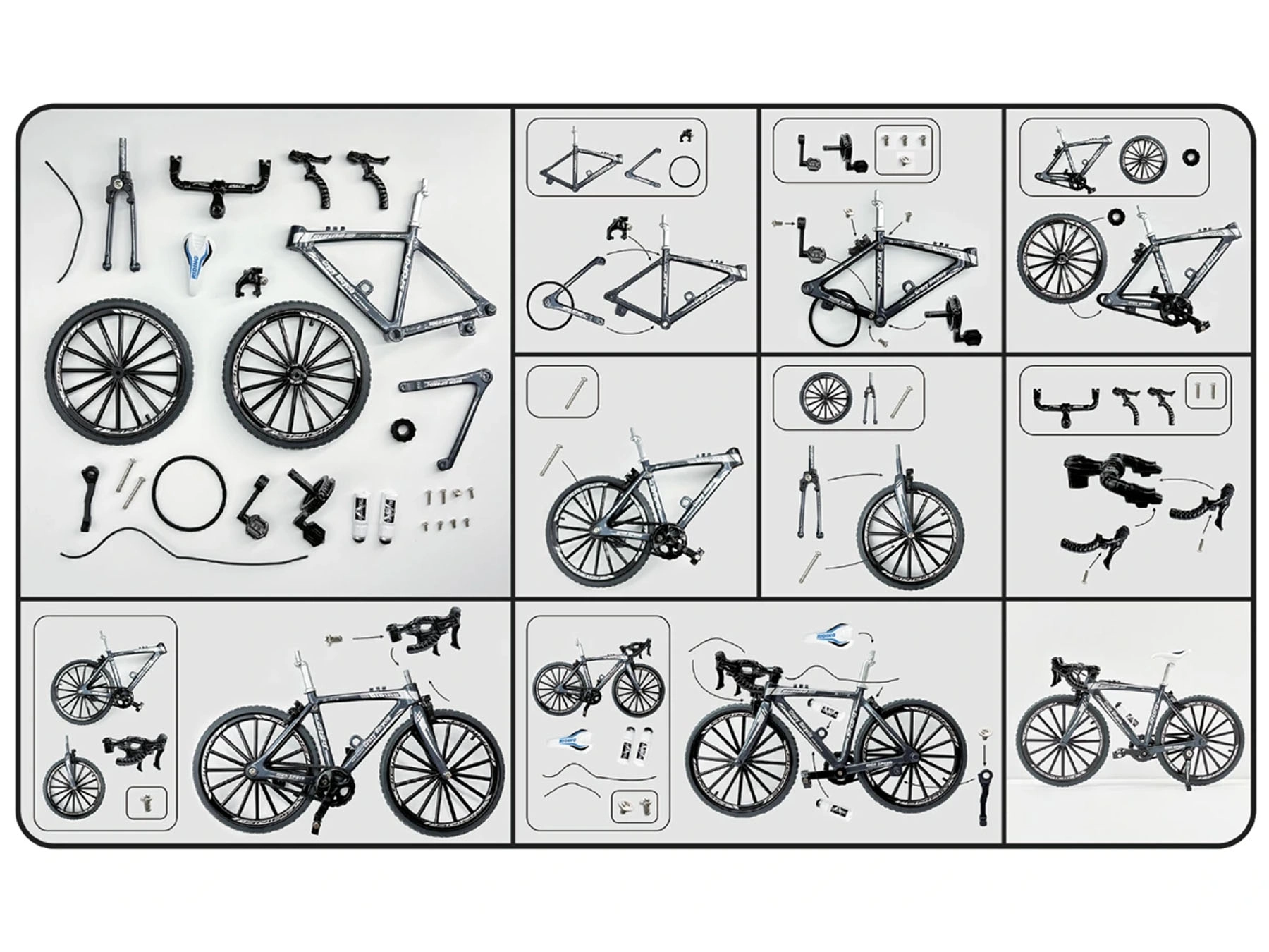 Sada na sestavení závodního kola z kovu je ideální volbou pro malé stavitele a nadšence do cyklistiky. Přehledné díly, praktické nářadí v balení a jasný koncept zajišťují, že montáž zvládnou i začátečníci. Hotový model vyniká odolností, detailním zpracováním a působivým vzhledem v barevných variantách červená, žlutá a černá.