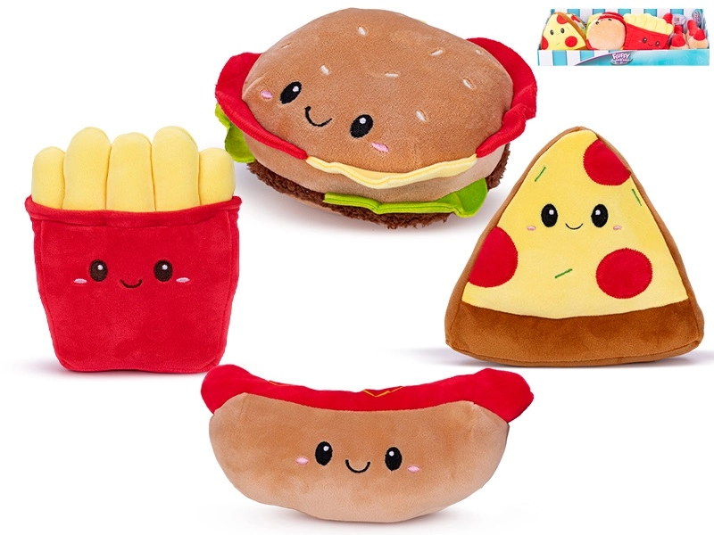 Objevte roztomilé plyšové dobroty z kolekce Fluffy Menu – hamburger, pizza, hranolky a hot dog. Jsou měkoučké, bezpečné od narození (0m+) a díky realistickému designu podněcují kreativní hru na kuchaře či restauraci. Ideální velikost 14–23 cm skvěle padne do malých dětských ruček a kvalitní plyšový materiál je příjemný i odolný.
