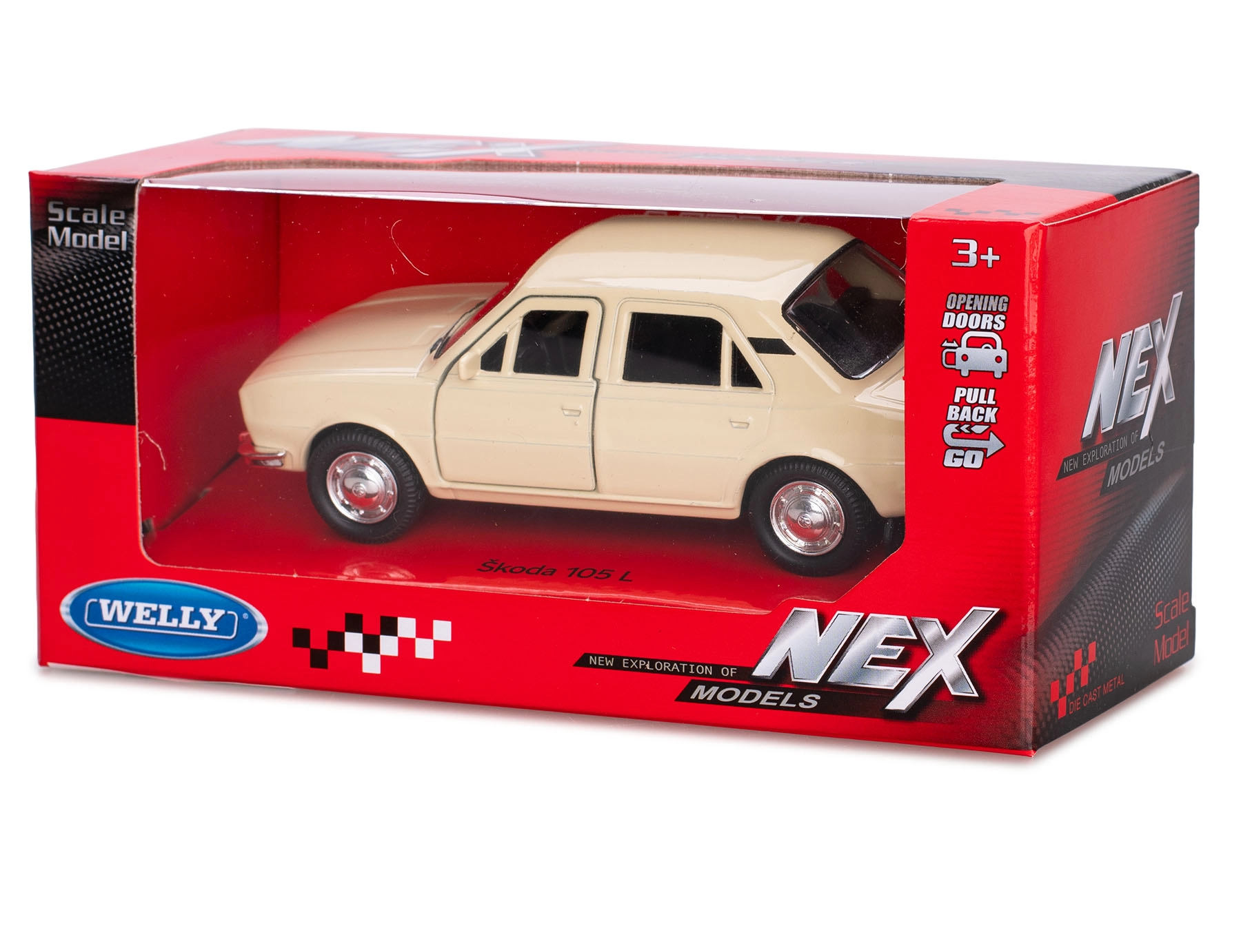 Užijte si kus automobilové historie s modelem Škoda 105L 1976 od Welly. Kovové provedení s plastovými detaily věrně zachycuje typické linie a proporce vozu, díky čemuž je model atraktivní pro sběratele i malé nadšence do aut. Praktická funkce zpětného chodu přidává na hratelnosti – stačí natáhnout dozadu a vůz se rozjede vpřed.
