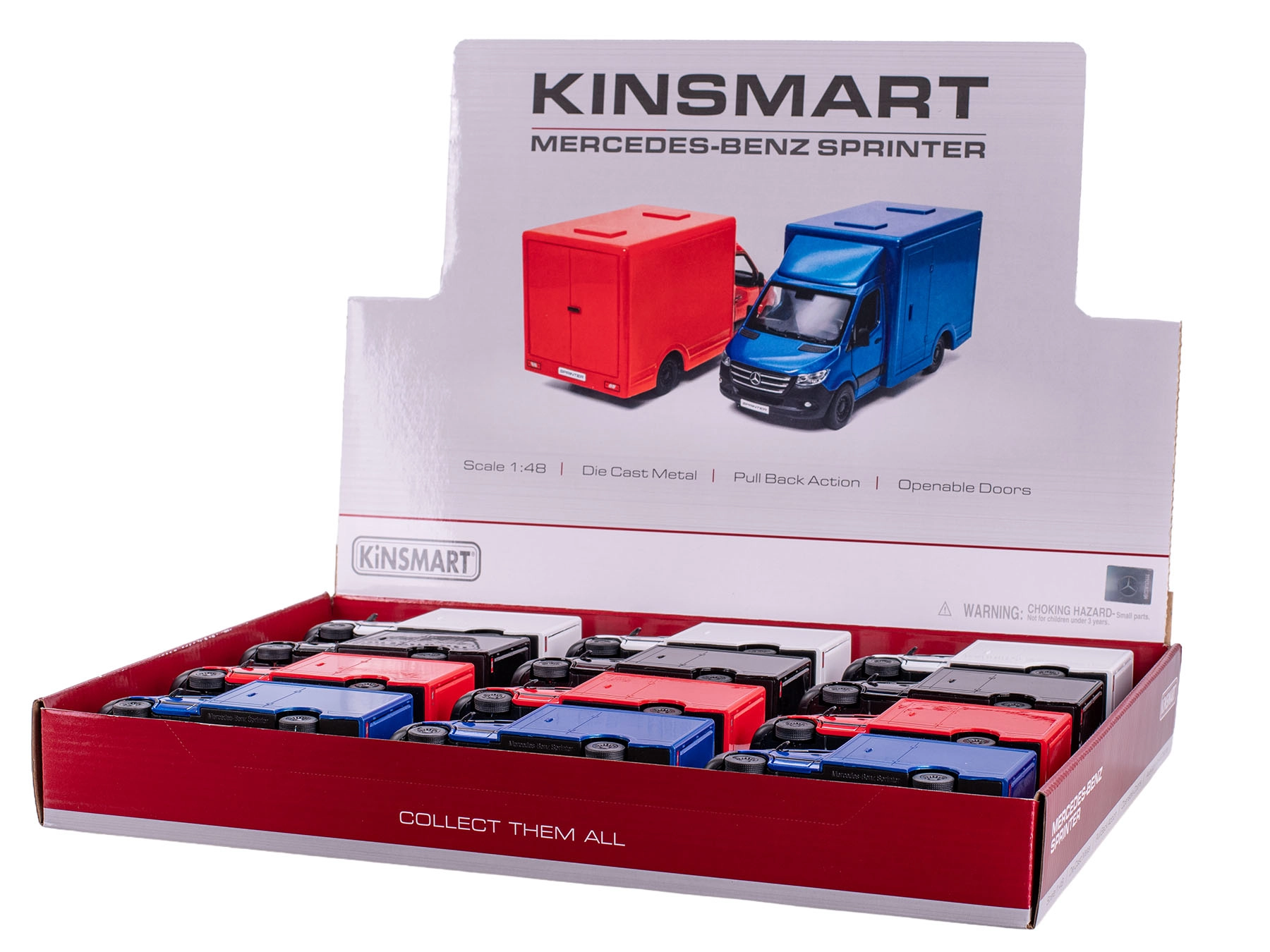 Kovový model dodávky MERCEDES-BENZ Sprinter v měřítku 1:48 potěší realistickými detaily a kvalitním zpracováním. Díky otevíracím dveřím a mechanismu zpětného natažení si užijete interaktivní hru i vystavení ve sbírce. Odolná kombinace kovových a plastových dílů zajišťuje dlouhou životnost a zároveň nízkou hmotnost.