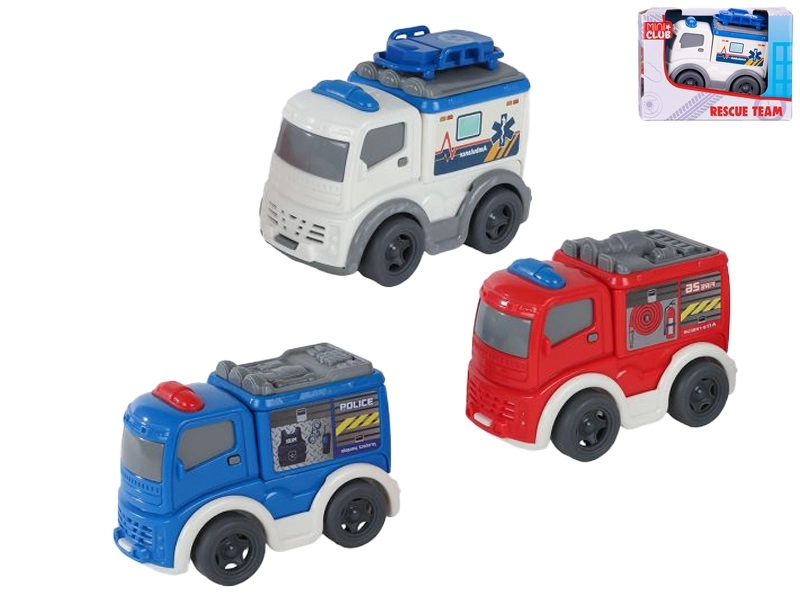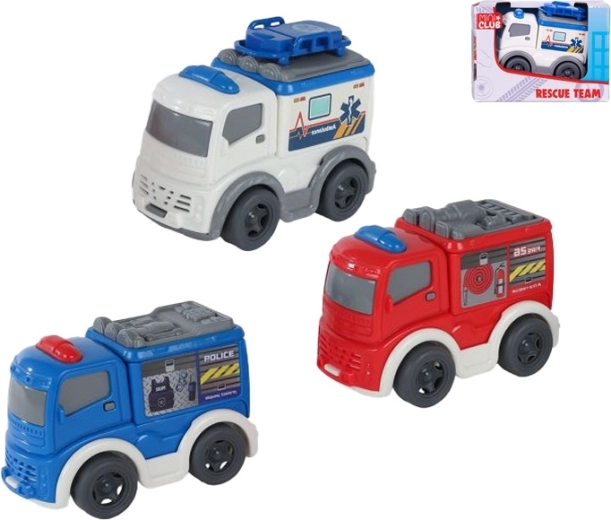 Dostupné jsou tři oblíbené druhy – policejní auto, hasičský vůz a ambulance – které inspirují k napínavé hře na záchranu a rozvíjejí představivost. Každé vozidlo je baleno jednotlivě v krabičce, takže se skvěle hodí jako drobný dárek.