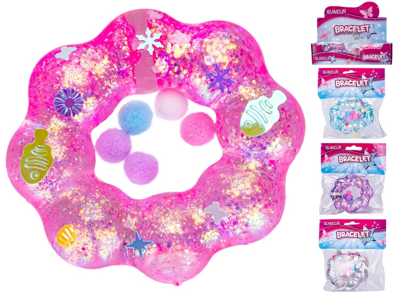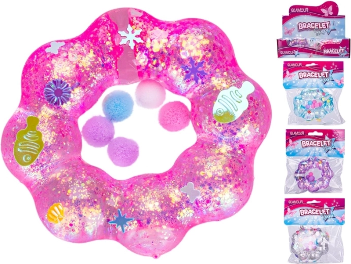 Stylový strečový náramek s průměrem 8,5 cm zaujme svým lesklým designem s flitry a třpytkami. Díky pružnému materiálu se snadno přizpůsobí různým velikostem zápěstí a nabízí pohodlné nošení pro děti i dospělé. Dostupný ve čtyřech atraktivních barvách – fialové, růžové, tyrkysové a šedé. Navíc funguje jako antistresová pomůcka pro mačkání a natahování během dne.