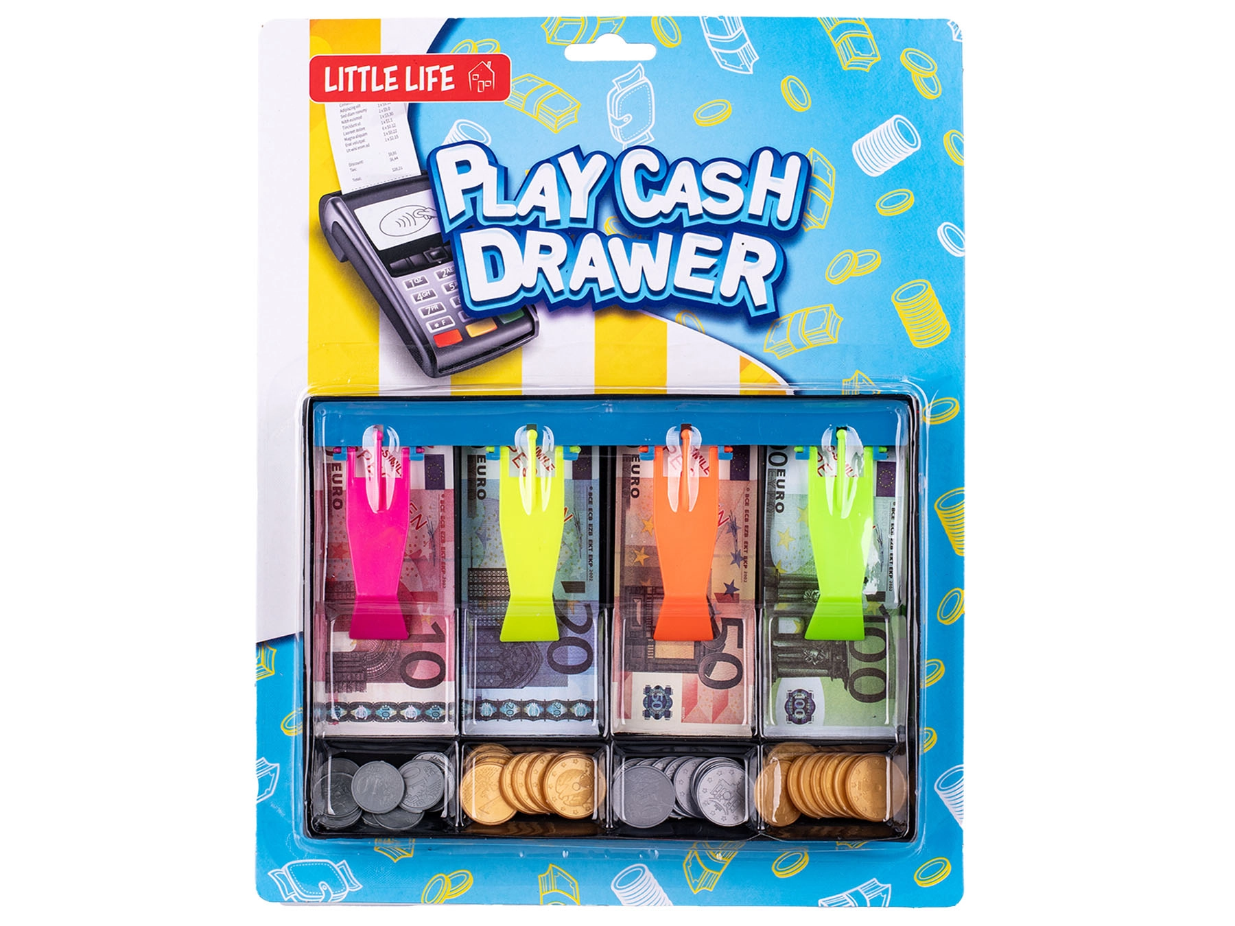 Zábavná dětská pokladna o rozměrech 20 × 14,5 cm je ideální pro hru na obchod. Součástí jsou plastové bankovky a mince pro procvičování počítání peněz a rozvoj finančního povědomí. Kompaktní velikost usnadňuje umístění v pokojíčku, kvalitní materiály zajišťují bezpečnou a dlouhou životnost. Vhodná pro děti od 3 let.