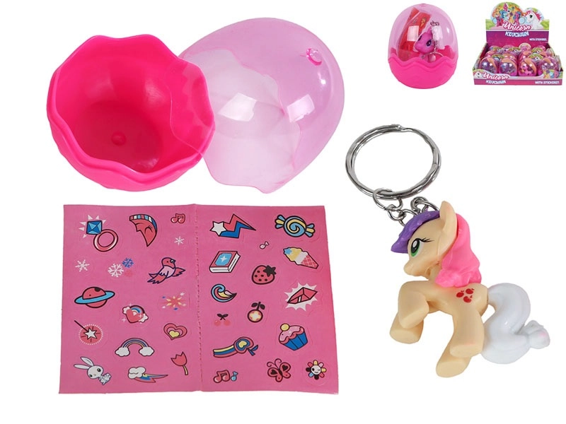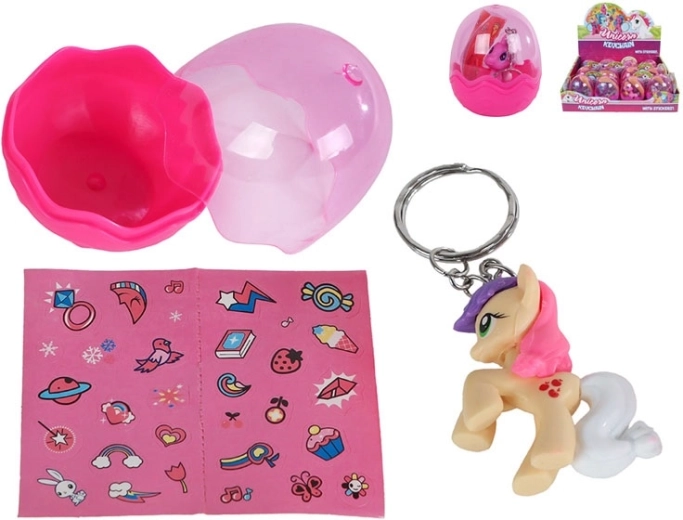 Roztomilý přívěsek na klíče ve tvaru jednorožce potěší malé i velké fanoušky kouzelných bytostí. Nabízí kompaktní velikost 5 cm, je vyroben z odolného plastu a dodává se ve vajíčku se samolepkami pro ještě větší zábavu. K dispozici je šest barevných variant, takže si každý najde svého favorita. Ideální jako malý dárek či sběratelský doplněk pro děti od 3 let.