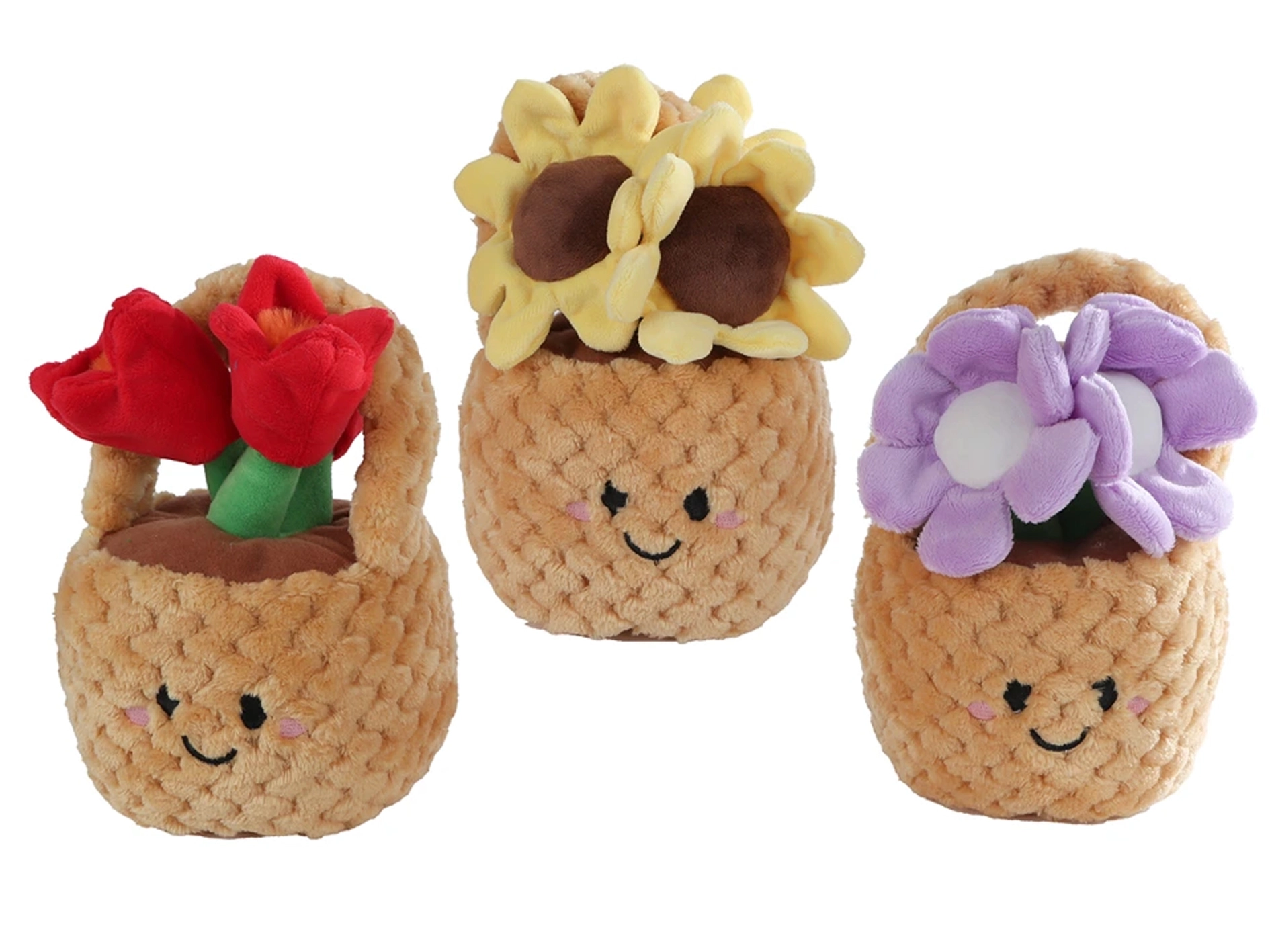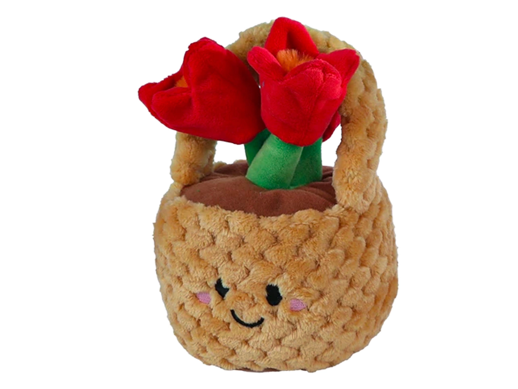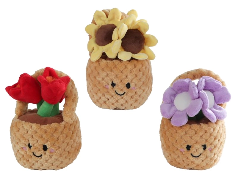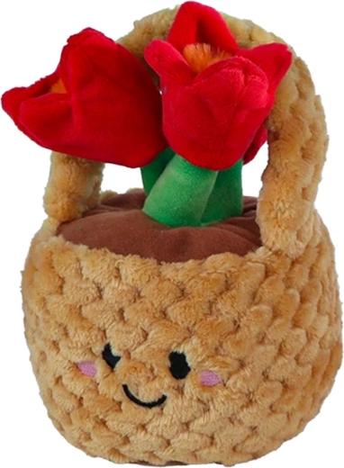 Roztomilý plyšový košík s usměvavou tvářičkou a květinami zútulní dětský pokoj a potěší už od narození. Měkký hypoalergenní plyš, bezpečné provedení bez ostrých částí a ideální velikost do dětské ručky (18 cm) podporují jemnou motoriku i hmatové vnímání. K dispozici ve třech barvách květů – fialové, žluté a červené.