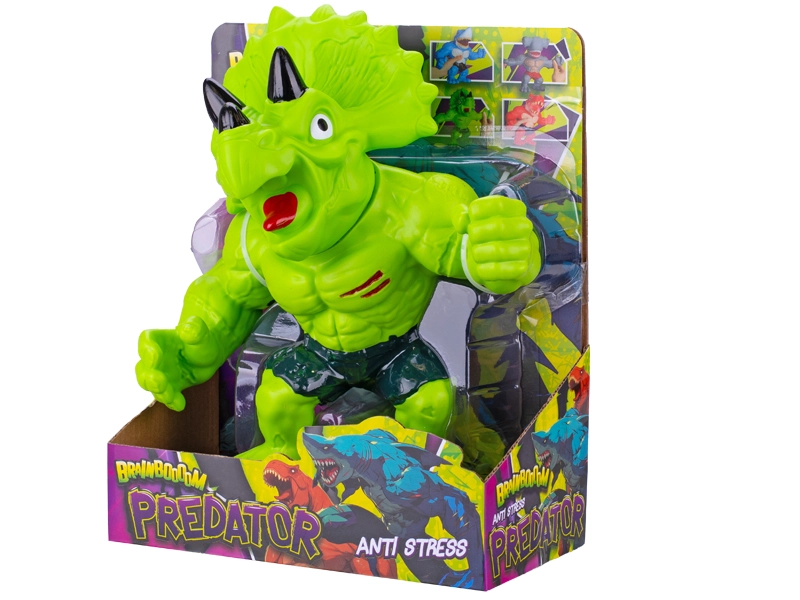 Objevte zábavnou antistresovou hračku – strečový triceratops Brainboooom s realistickým provedením. Má pevnou plastovou hlavu a měkké, natahovatelné tělo, které můžete mačkat, natahovat i hníst pro uvolnění stresu. Ideální pro děti od 3 let i dospělé, baleno v dárkové krabičce.