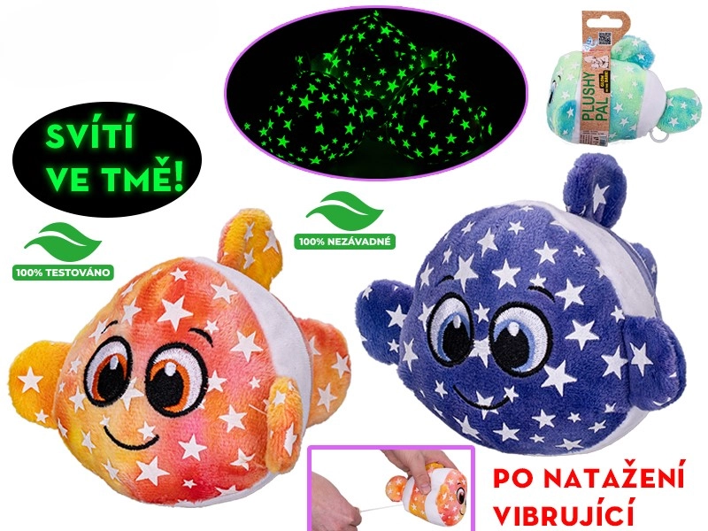 Plyšová rybička s vibrací a svícením ve tmě je navržena pro každodenní uklidnění i hravé objevování. Po jednoduchém natažení rybička vibruje, čímž jemně stimuluje hmat a pomáhá rozvíjet koordinaci. Svítící (fosforeskující) detaily na tělíčku přinášejí pocit bezpečí při usínání a dodávají večernímu rituálu kouzelnou atmosféru.