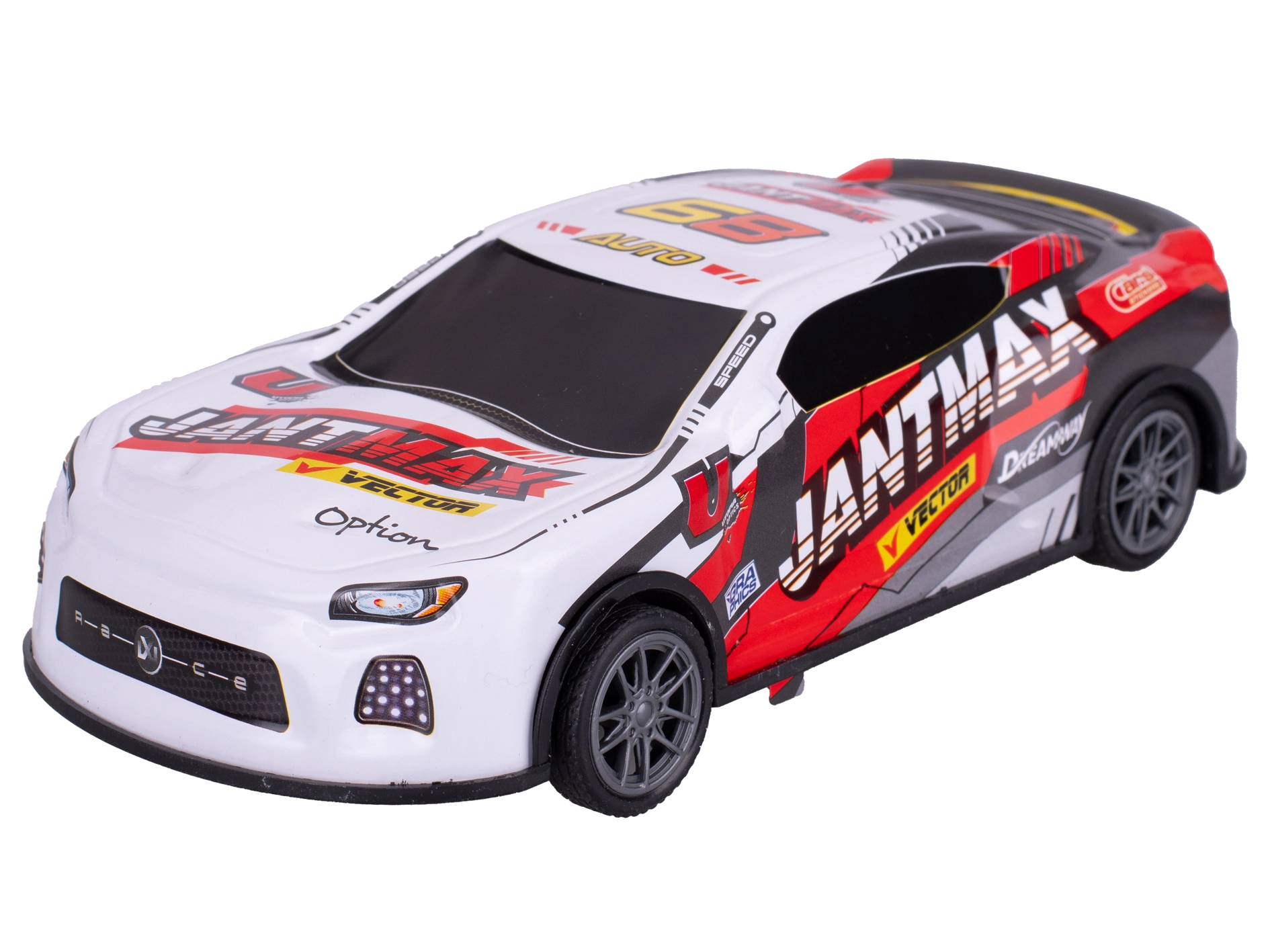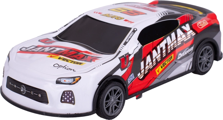- Akční driftování díky setrvačníkovému pohonu – žádné baterie, jen natáhnout a jet.