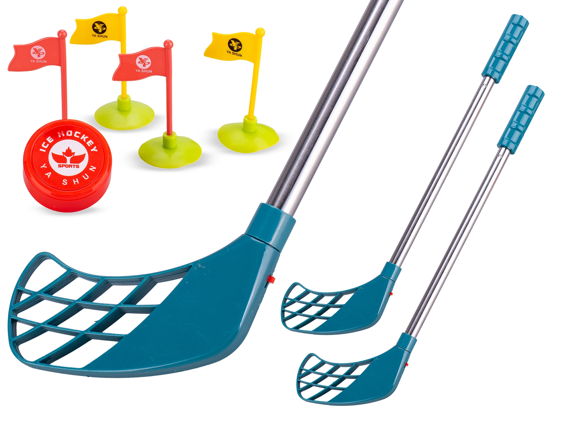 Zábavný a bezpečný dětský hokejový set pro malé sportovce od 3 let přináší akční hru doma i venku. Obsahuje dvě kompaktní branky, dvě hokejky s teleskopickými rukojeťmi pro přizpůsobení délky, a zábavné světelné a zvukové efekty pro realističtější zážitek. Díky nastavitelné délce hokejek a lehké plastové konstrukci je set ideální pro rozvoj koordinace, rychlosti a týmové spolupráce.