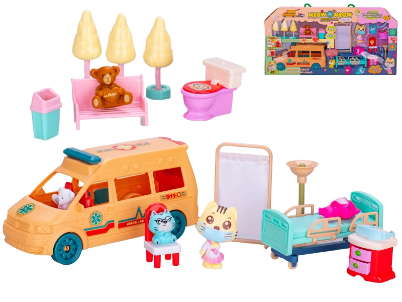 • Kompletní set pro hru na veterináře: sanitka, figurky zvířat a nábytek